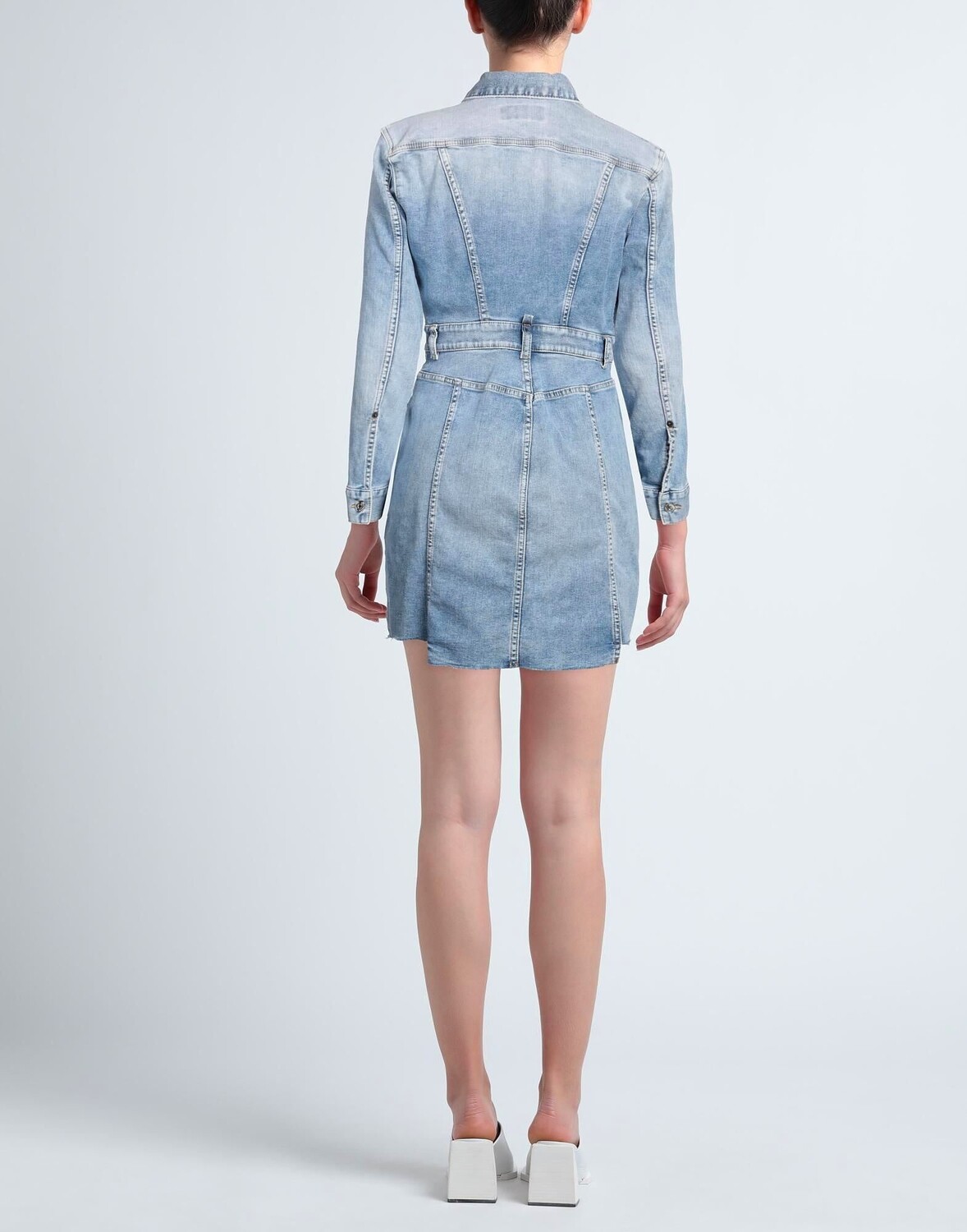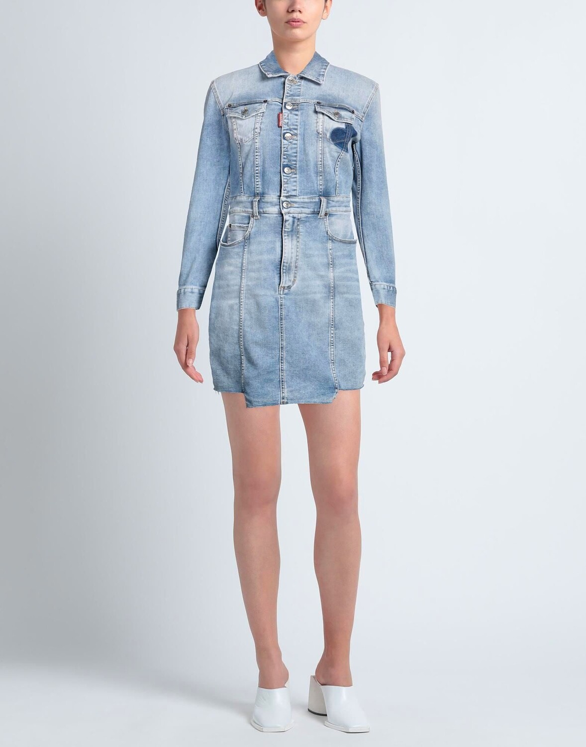 Деним, выцветший, логотип бренда, одноцветное изделие, классический воротник, длинные рукава, без подкладки, застежка-молния, пуговицы, множество карманов, стрейч, платье-рубашка, маленький размер