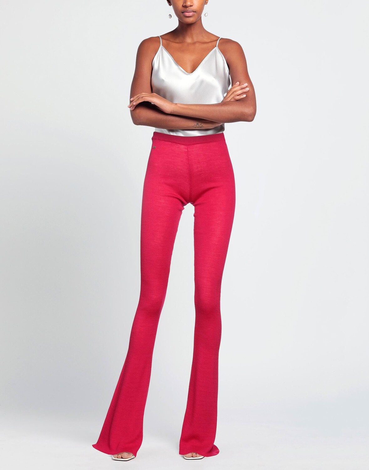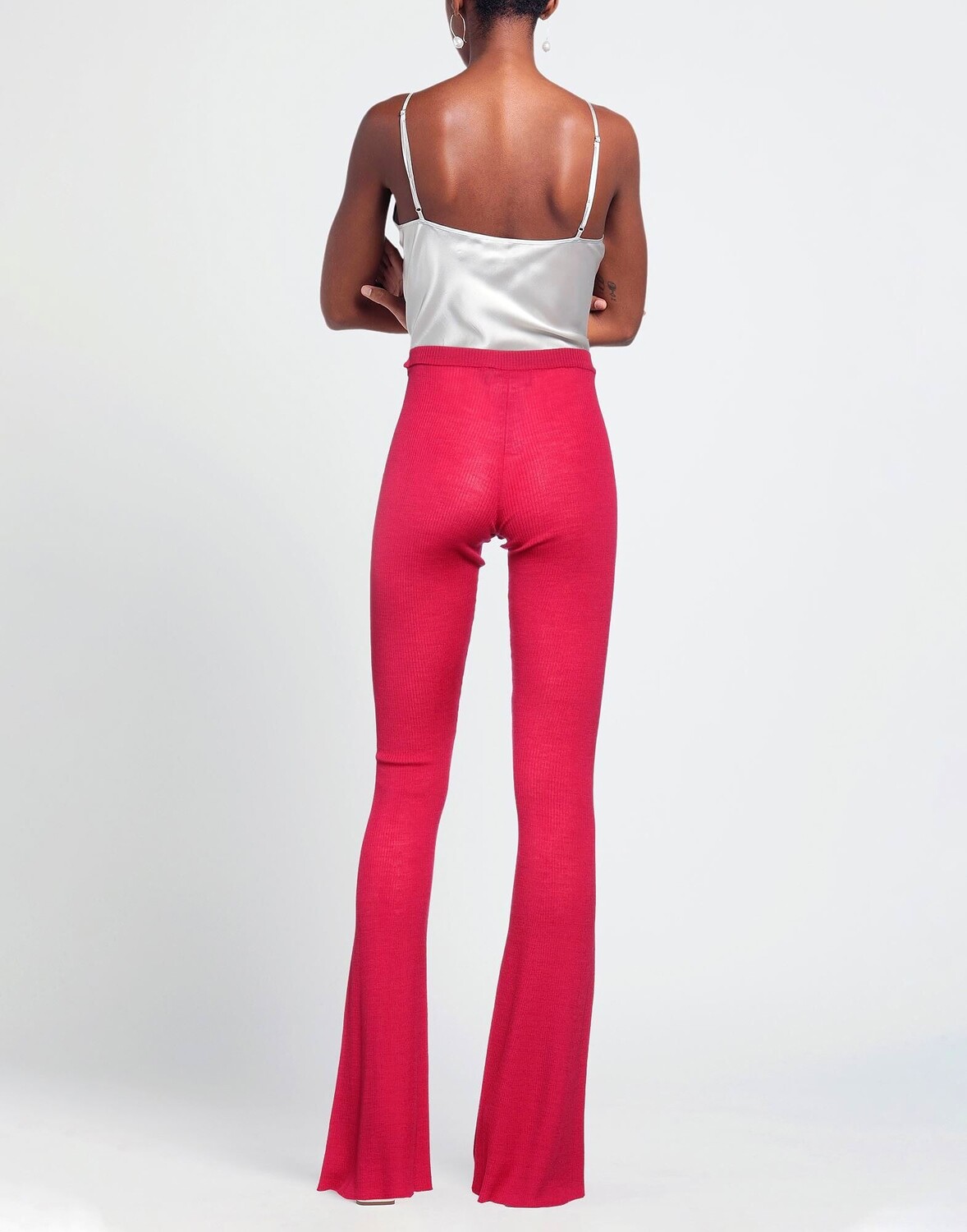Брюки трикотажные, облегченной вязки, логотип бренда, одноцветное изделие, средняя посадка, резинка на талии, расклешенный крой, удобная посадка, без карманов
