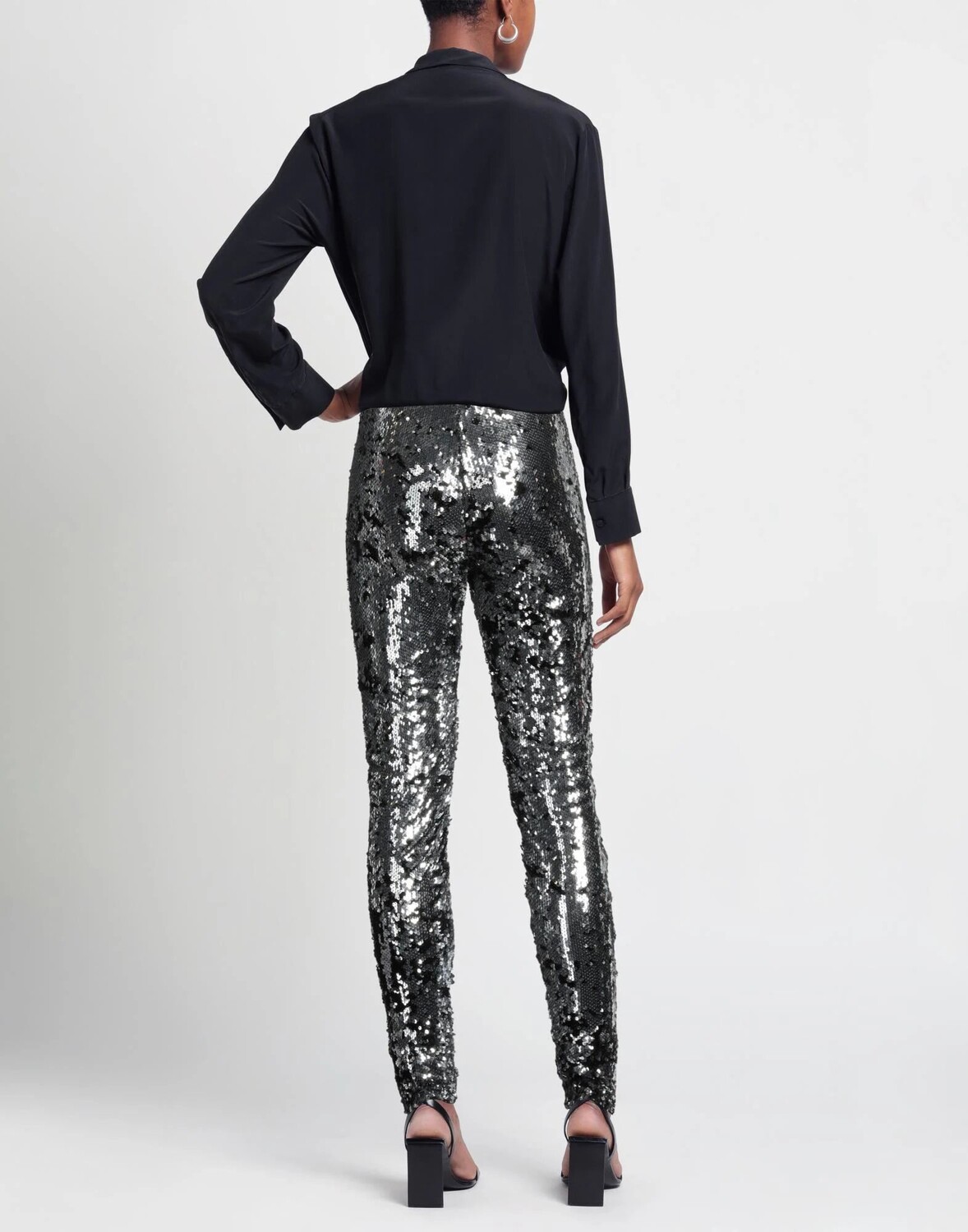 Узкие брюки, трикотаж, однотонное изделие с аппликациями, пайетками, завышенная талия, резинка на талии, приталенный крой, на подкладке, застежка на крючки, застежка-молния, без карманов