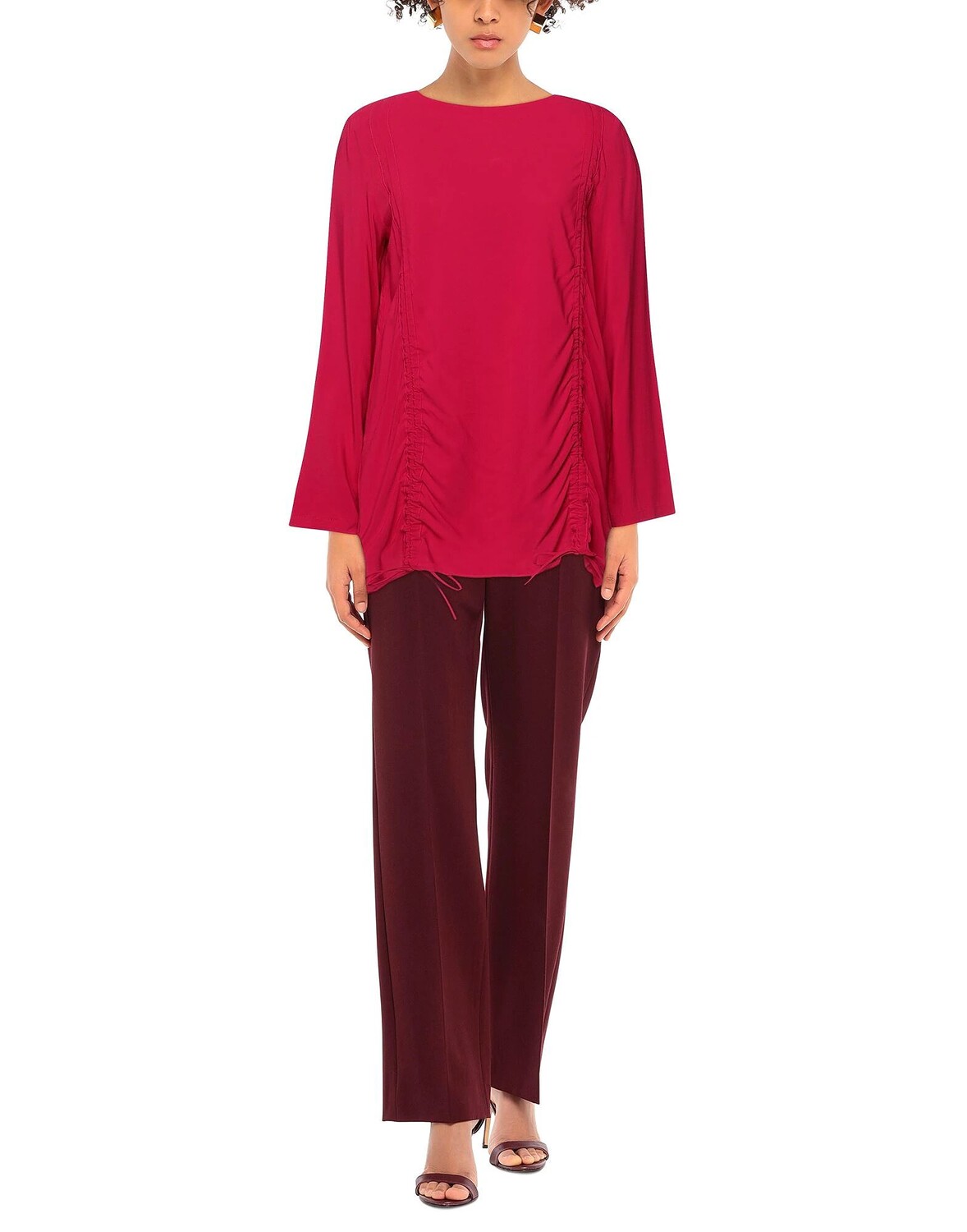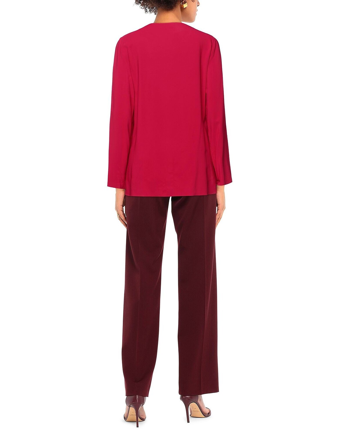 Креп, оборки, одноцветное изделие, круглый вырез, длинные рукава, без карманов, стрейч