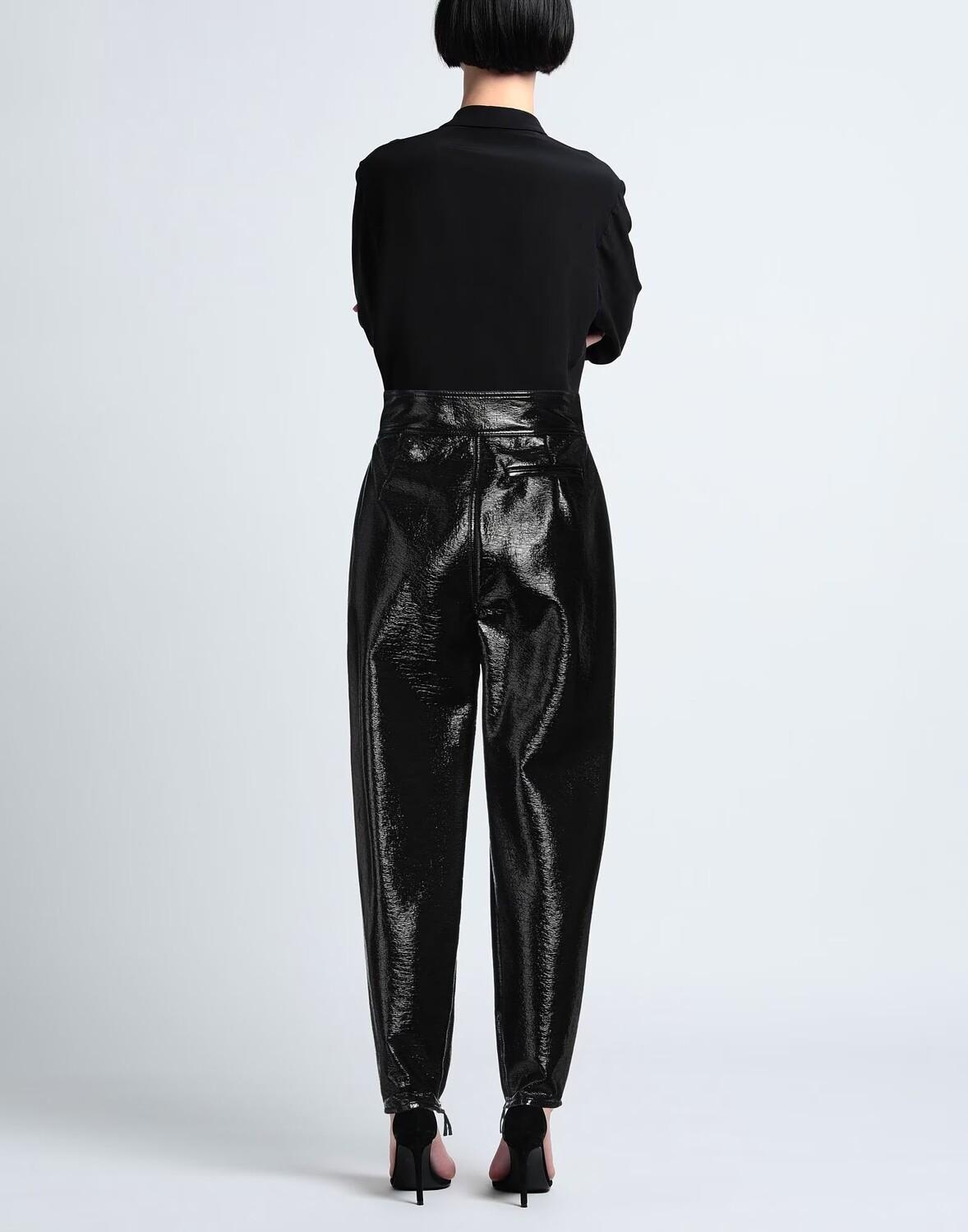 Ткань с покрытием, патентный эффект, без аппликаций, одноцветное изделие, высокая талия, стандартный крой, застежка-молния, молнии по низу, множество карманов, эластичный, ручная стирка, нельзя отбеливать, нельзя сушить в стиральной машине, нельзя гладить, зауженные брюки, это бренд имеет большой успех