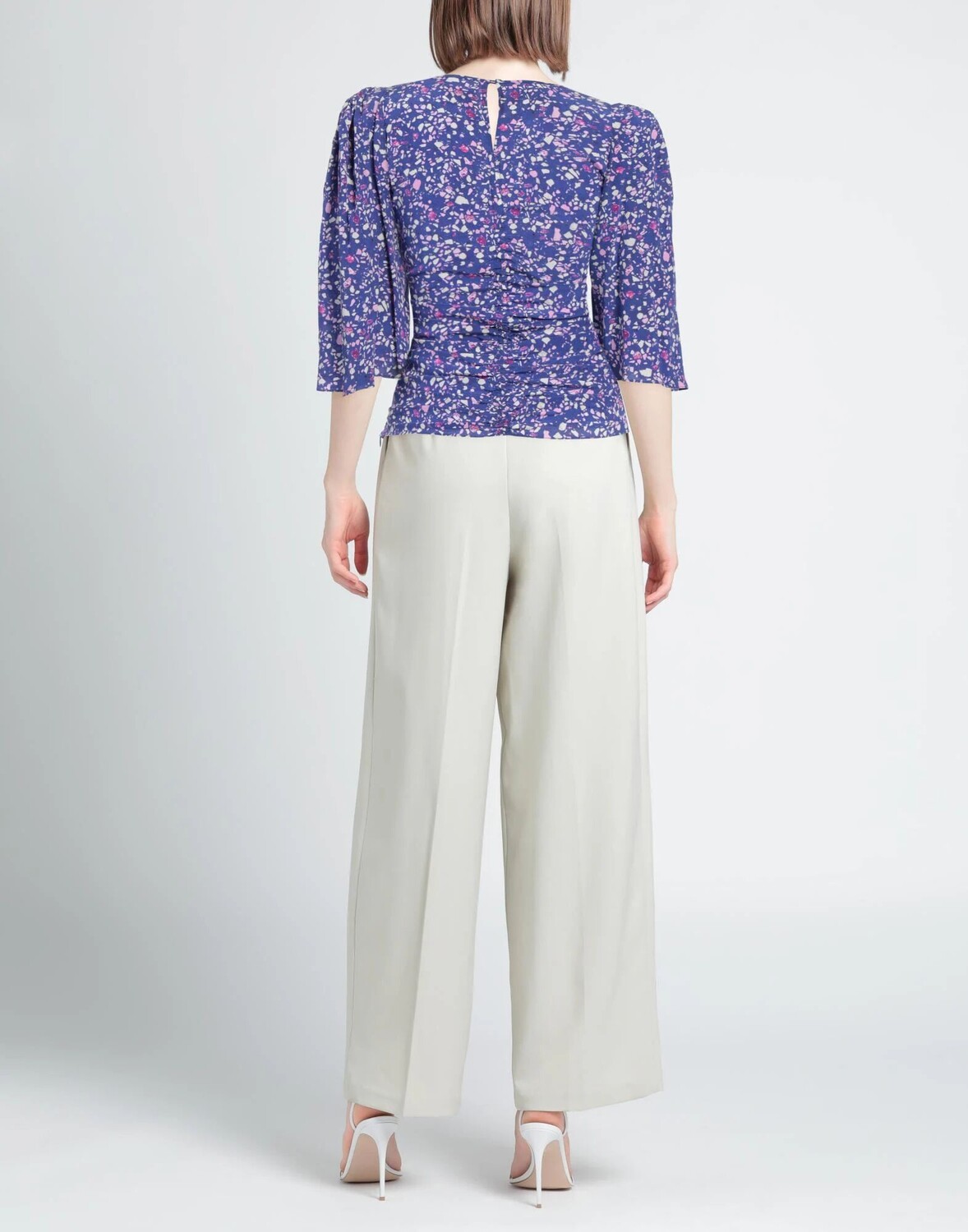 Верх, креп, разноцветный, драпированный, круглый вырез, короткие рукава, застежка-молния, 1 пуговица, стрейч, химчистка, нельзя отбеливать, нельзя сушить в стиральной машине