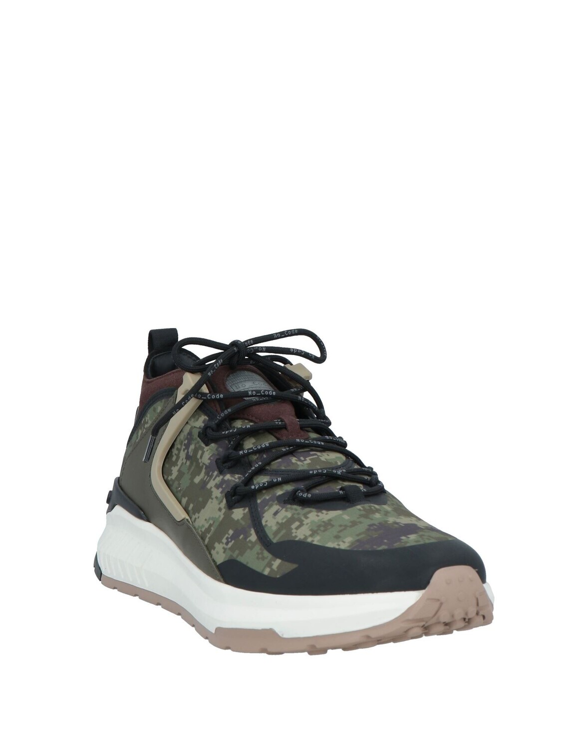 Замша, ракушка, логотип бренда, камуфляжный принт, внутренняя часть из технической ткани, шнуровка, круглый носок, плоская поверхность, резиновая подошва с тиснением, содержит нетекстильные части животного происхождения, функциональные кроссовки