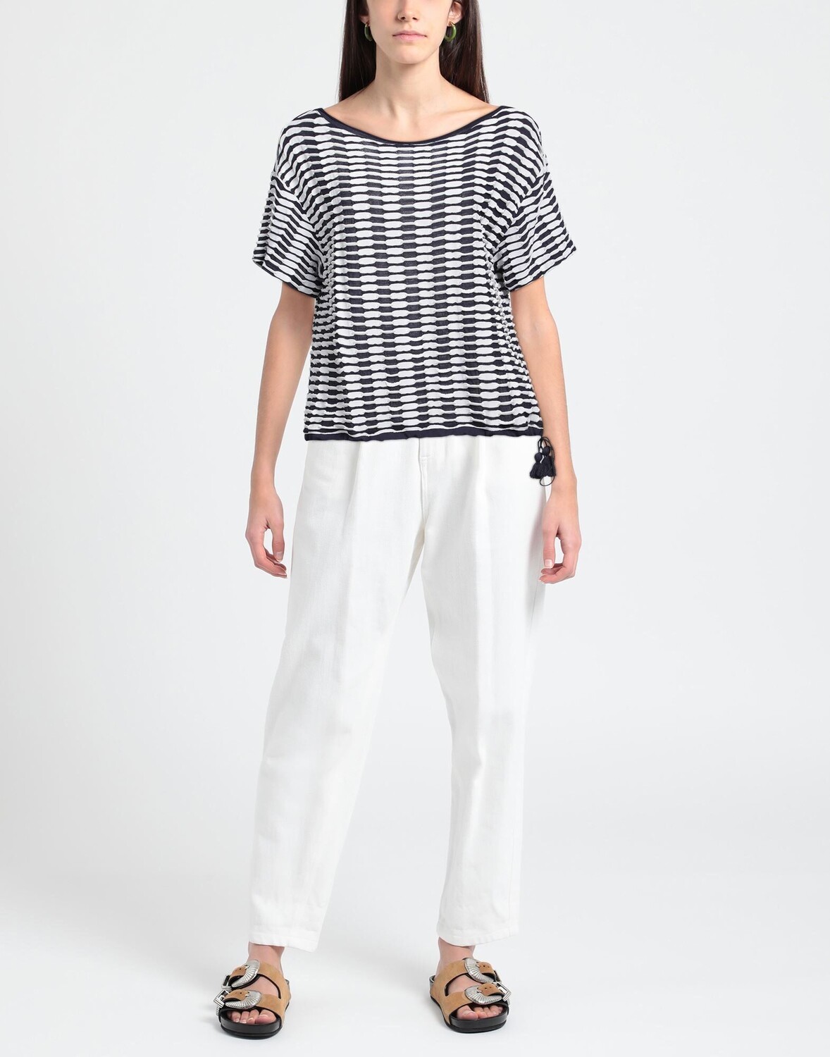 Трикотаж, легкая вязка, кисточки, двухцветный, овальный вырез, короткие рукава, без карманов, футболка с принтом, маленький размер