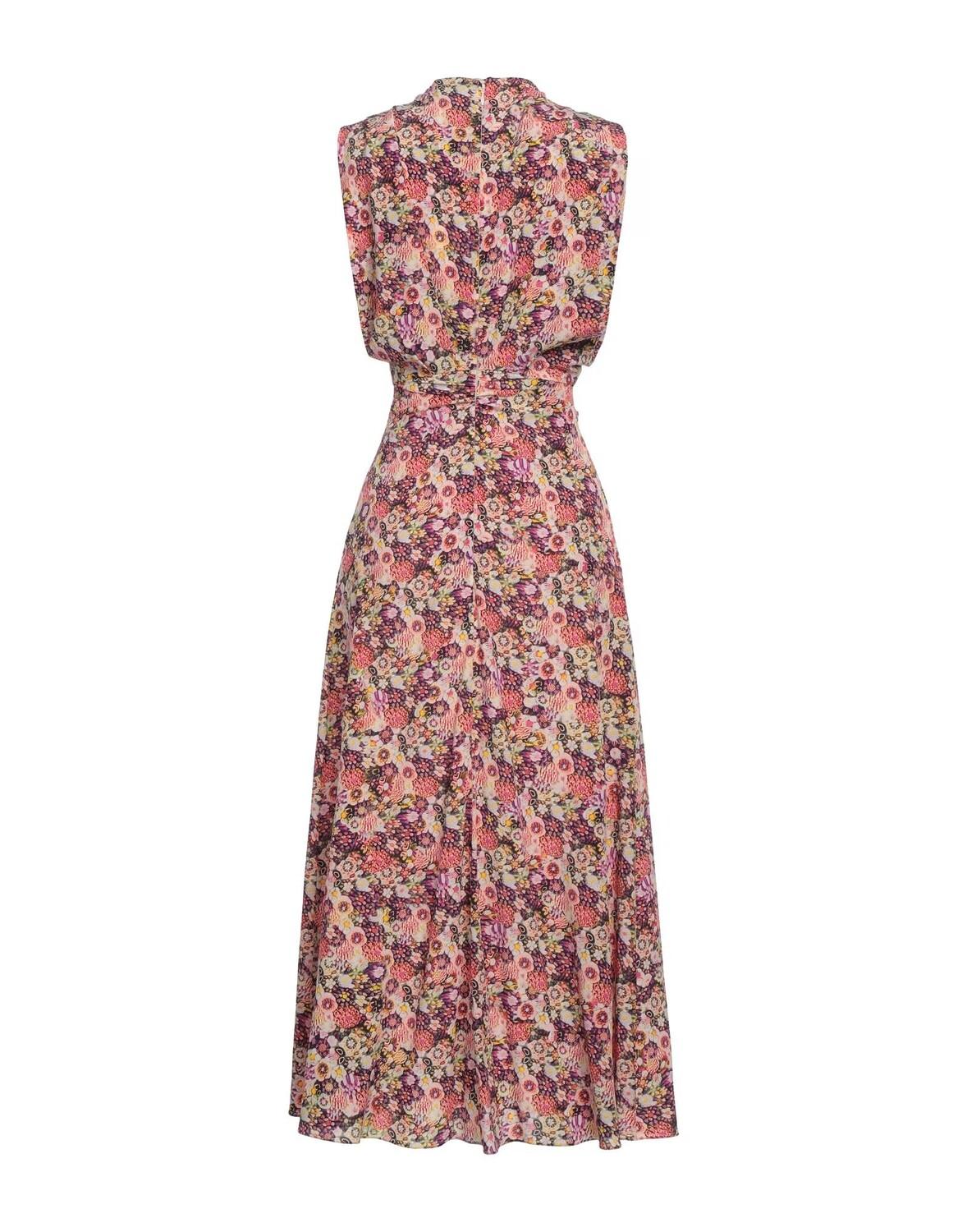Креп, присборки, цветочный принт, круглый вырез, без рукавов, внутренняя часть на частичной подкладке, застежка-молния, без карманов, стрейч, химчистка, нельзя сушить в стиральной машине, не отбеливать, расклешенное платье
