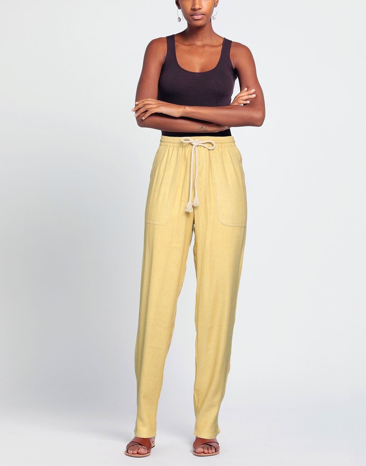 Полотняное переплетение, без аппликаций, одноцветное изделие, завышенная талия, прямые брючины, стандартный крой, застежка-кулиска, множество карманов, брюки