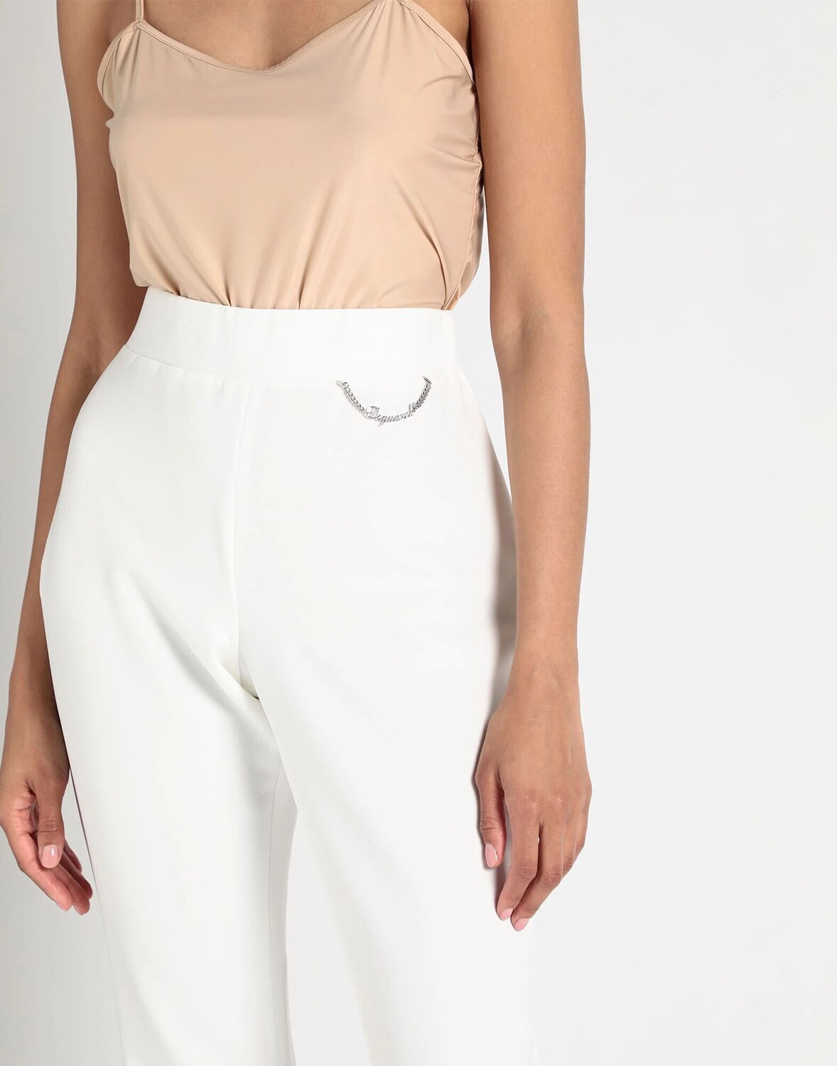Брюки-клеш, креп, логотип бренда, декорирование, однотонное изделие с аппликациями, завышенная талия, приталенный крой, застежка-молния, без карманов, нельзя стирать, не отбеливать, нельзя сушить в стиральной машине