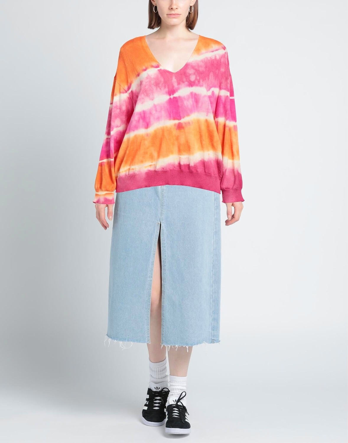 Трикотаж, легкая вязка, без аппликаций, разноцветный узор, v-образный вырез, длинные рукава, без карманов