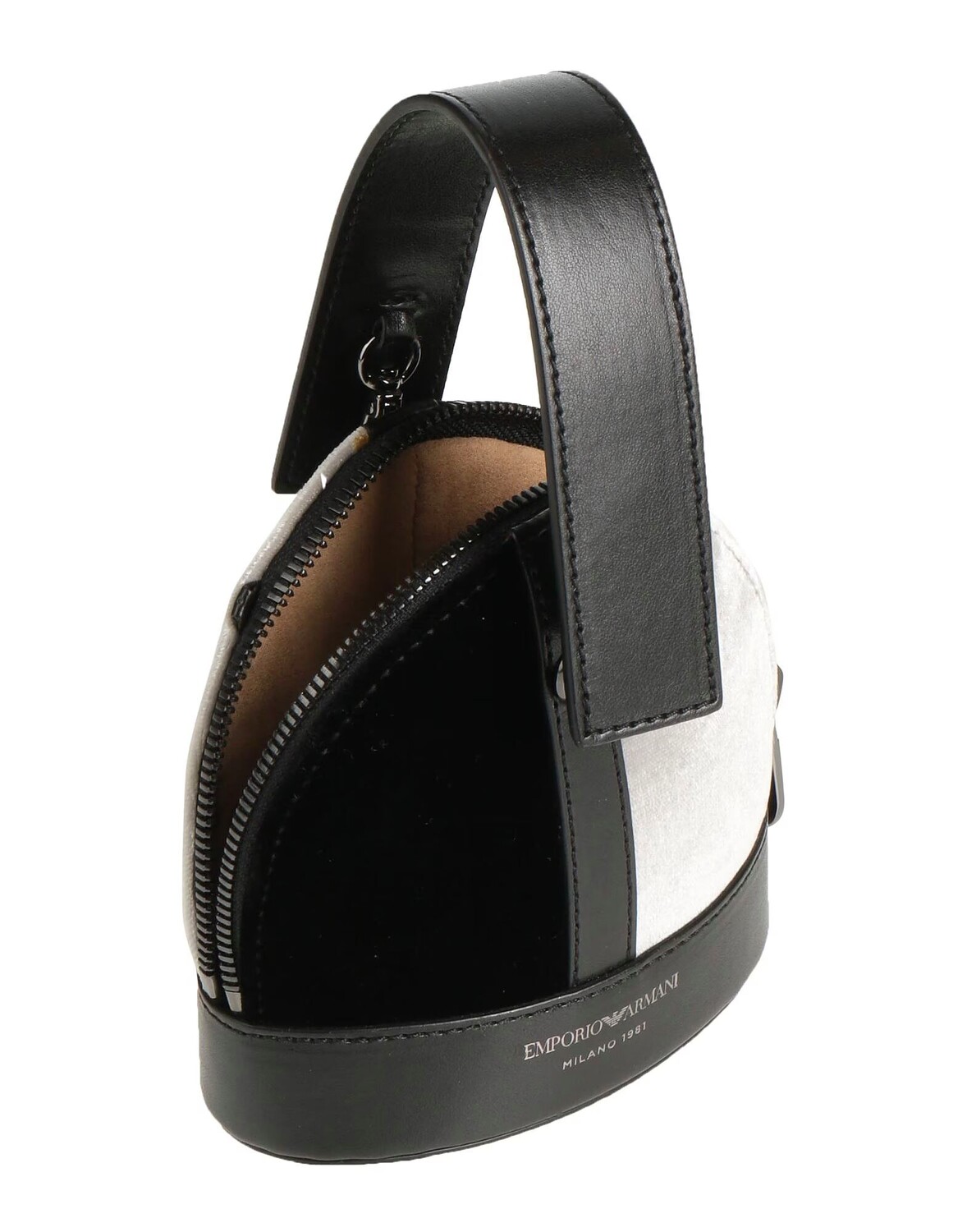 Маленький, бархат, ткань с покрытием, логотип бренда, двухцветный, застежка-молния, внутри на подкладке, внутренний карман, ручка для сумки, съемный плечевой ремень, металлические лямки, сумочка