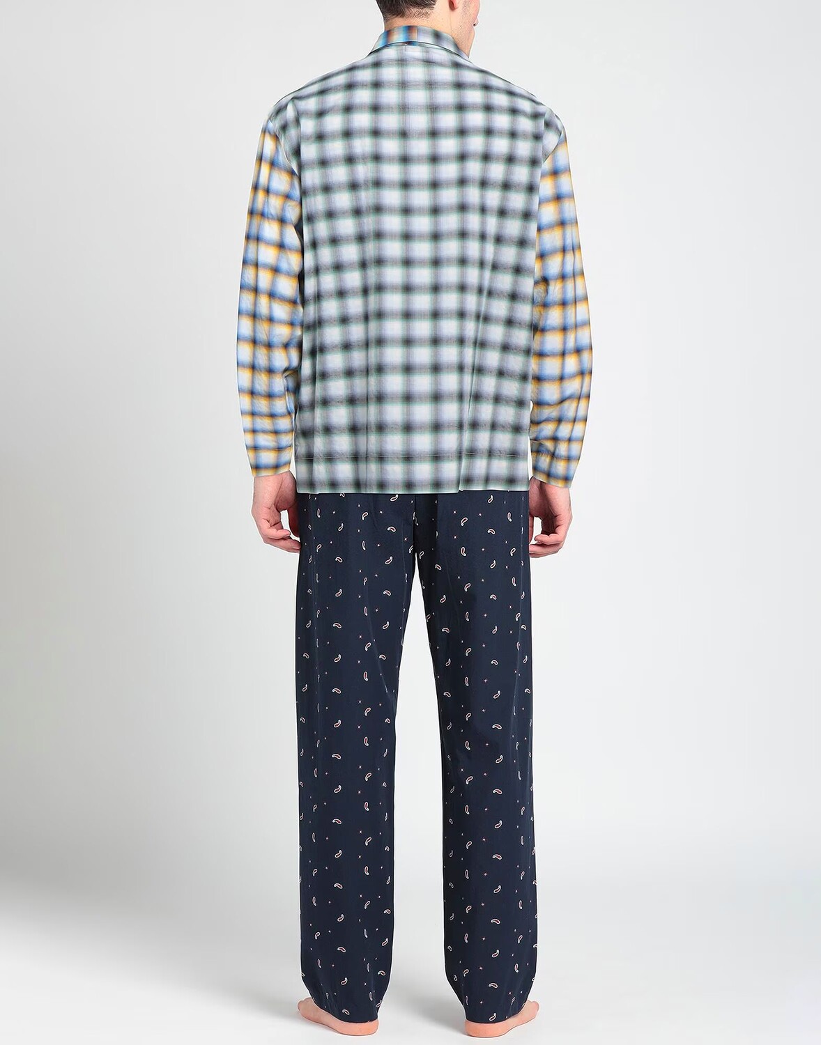 Полотняное переплетение, логотип бренда, многоцветный узор, воротник с лацканами, длинные рукава, без подкладки, пуговицы, один нагрудный карман, пижамный верх