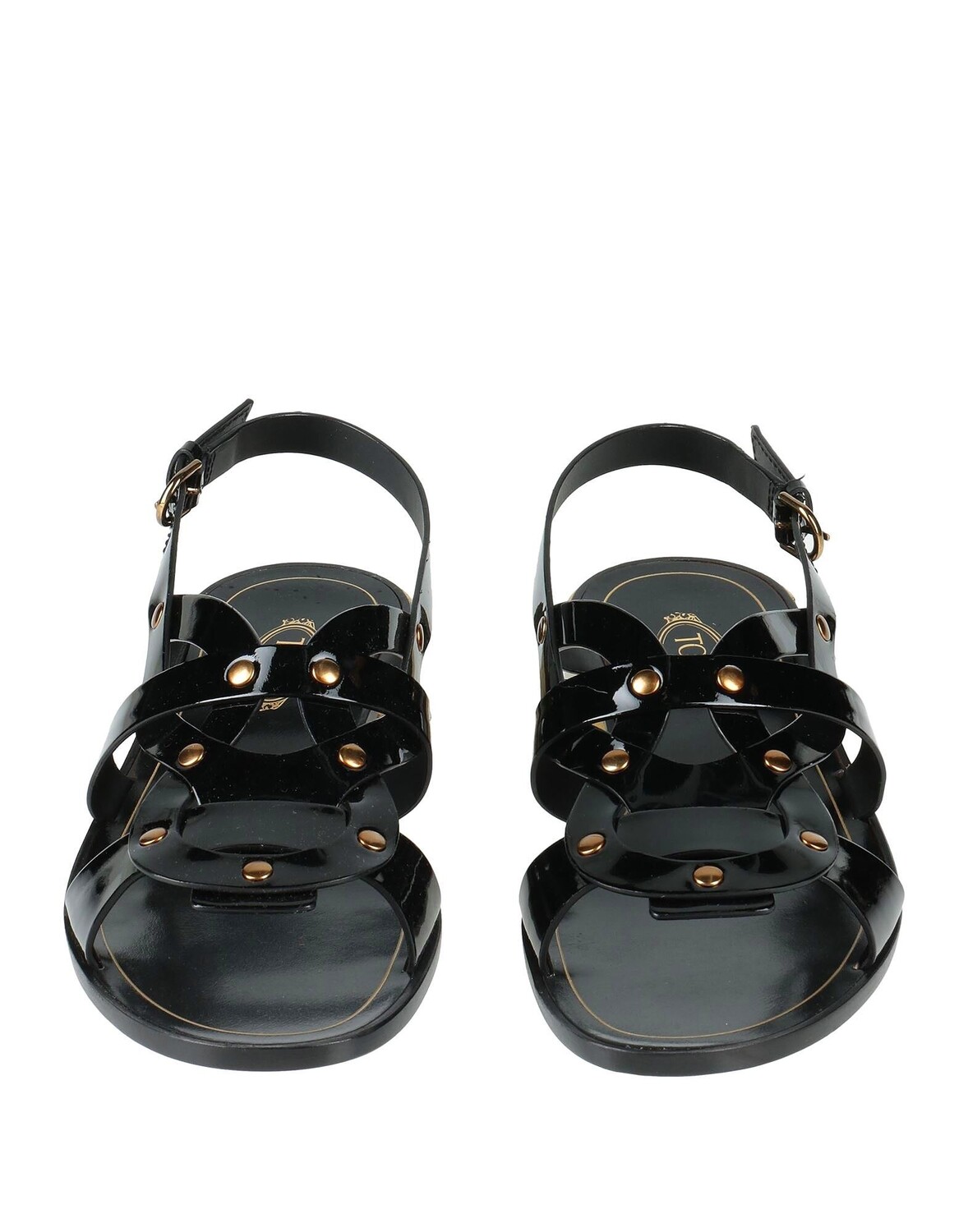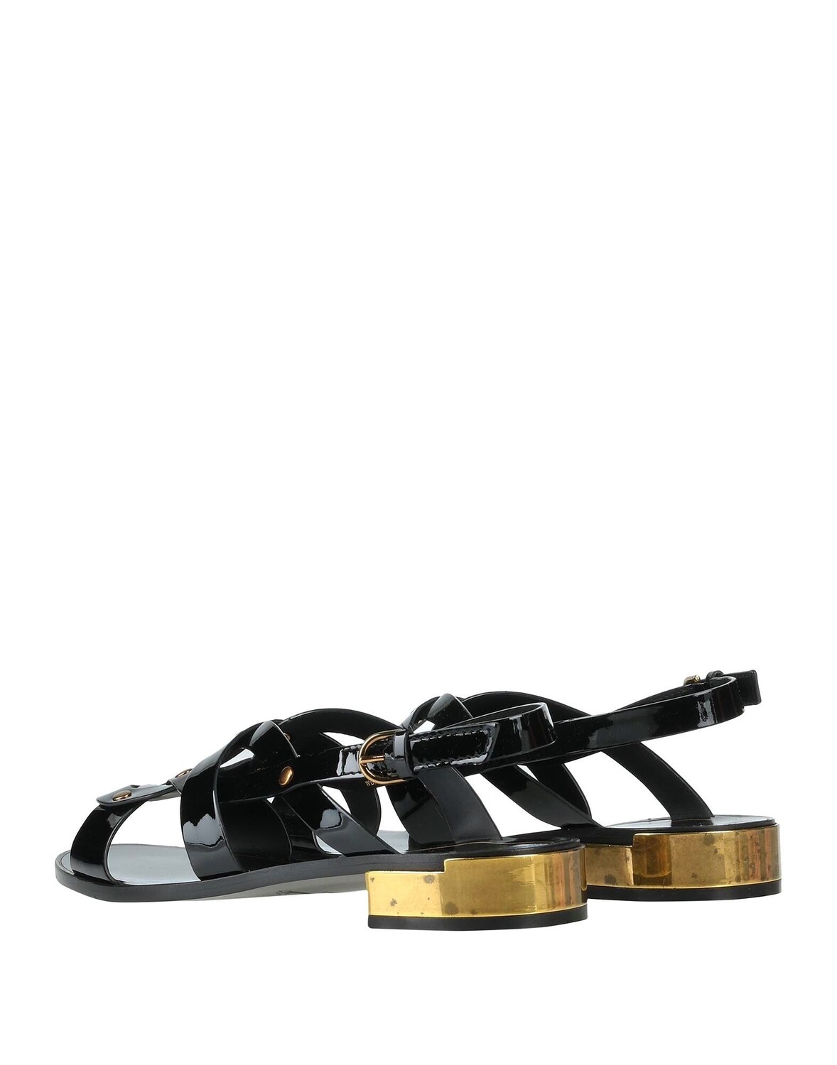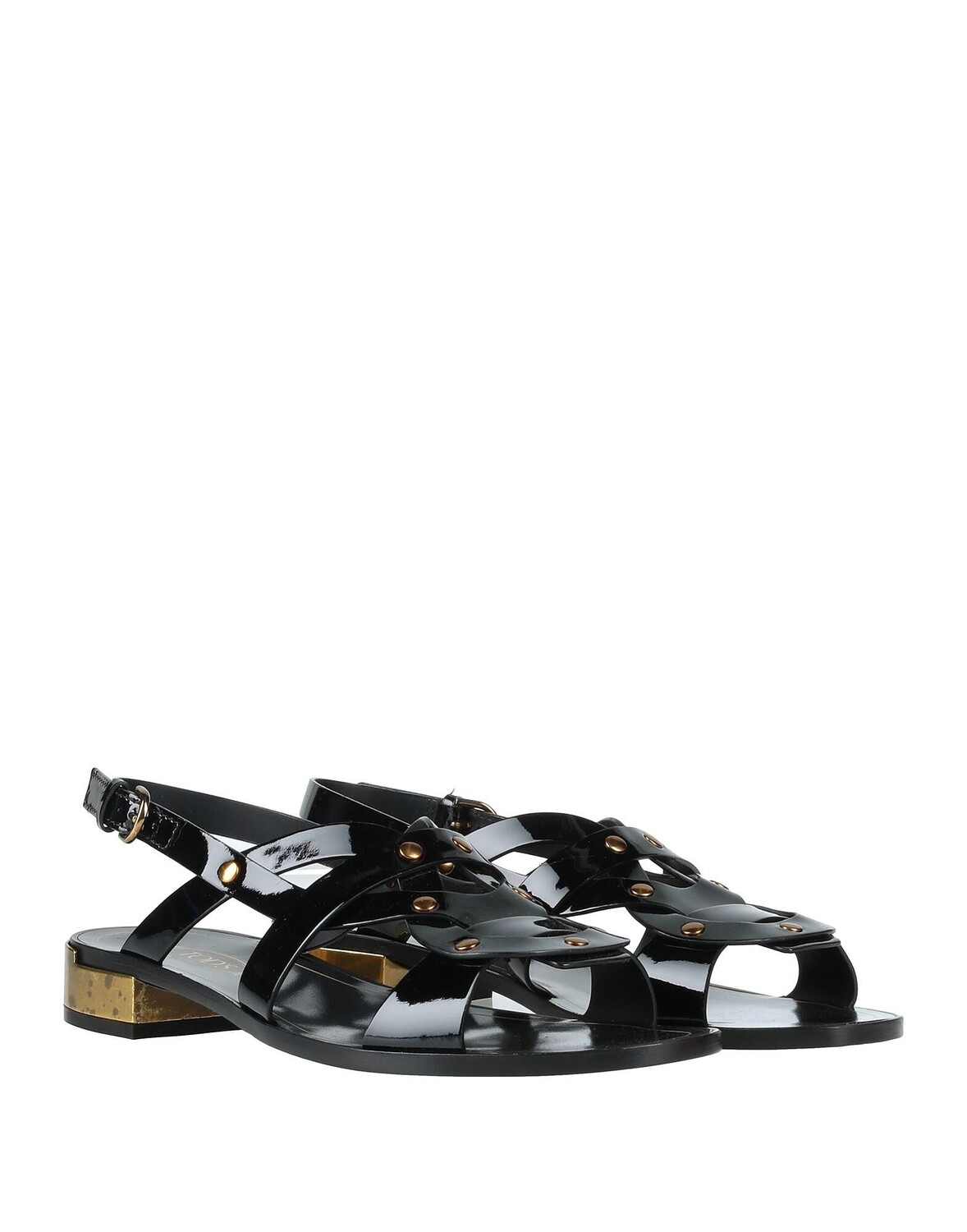 Кожа, эффект лака, заклепки, одноцветное изделие с аппликациями, подкладка из кожи, застежка-пряжка, скругленный носок, без каблука, кожаная подошва, содержит нетекстильные части животного происхождения, сандалии с ремешком на щиколотке