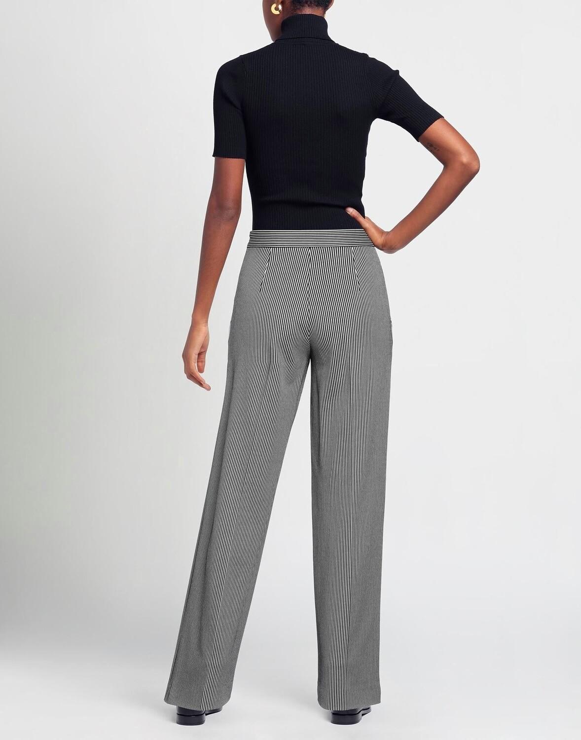 Джерси, без аппликаций, полоски, завышенная талия, широкие брючины, классический крой, застежка-молния, застежка на крючки, множество карманов, брюки чинос