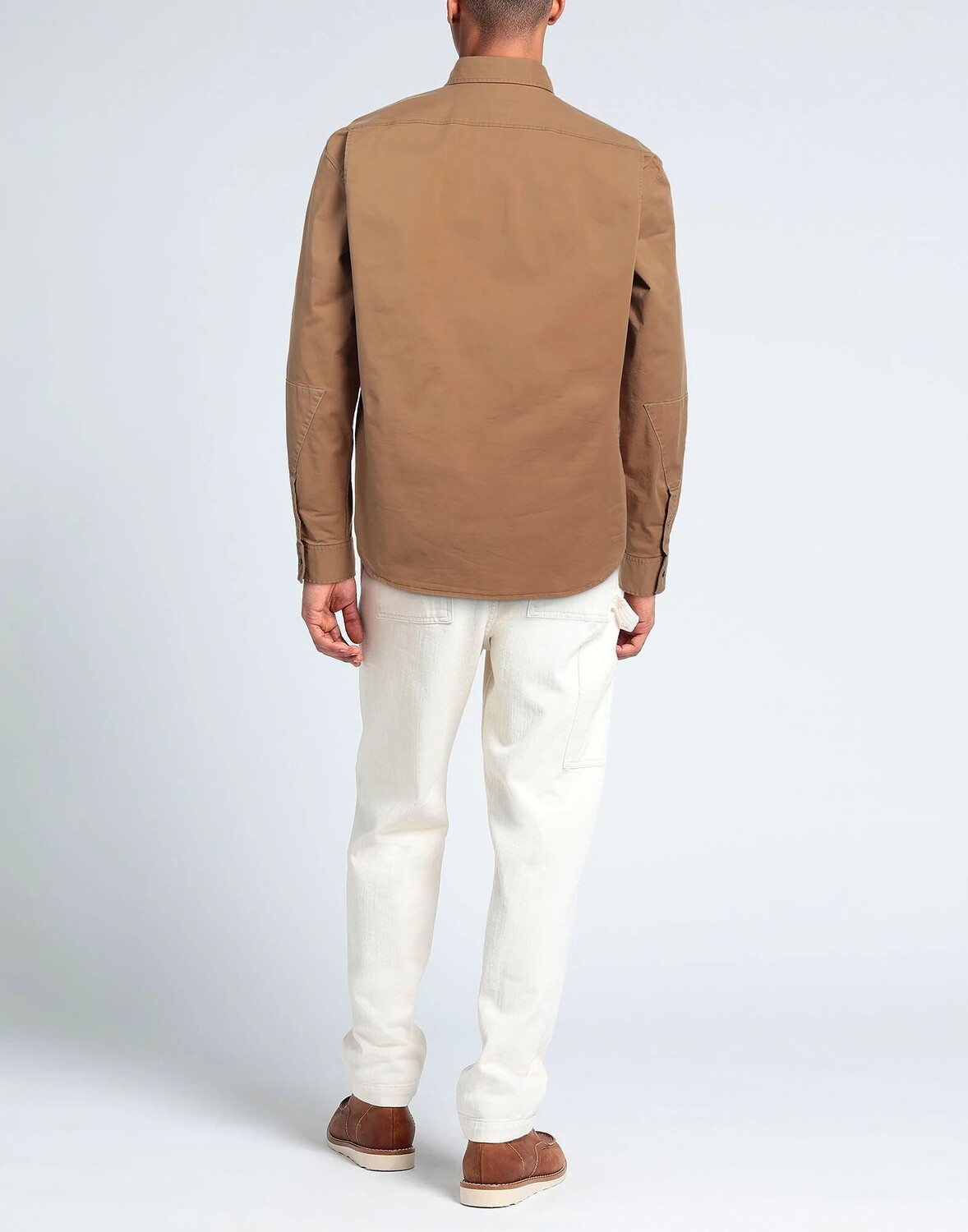 Тканый материал, логотип бренда, украшение, одноцветное изделие, классический воротник, длинные рукава, застежка на пуговицах, два нагрудных кармана, эластичный, содержит нетекстильные части животного происхождения, машинная стирка или химчистка, нельзя отбеливать, нельзя сушить в стиральной машине, обычный -подходящая рубашка