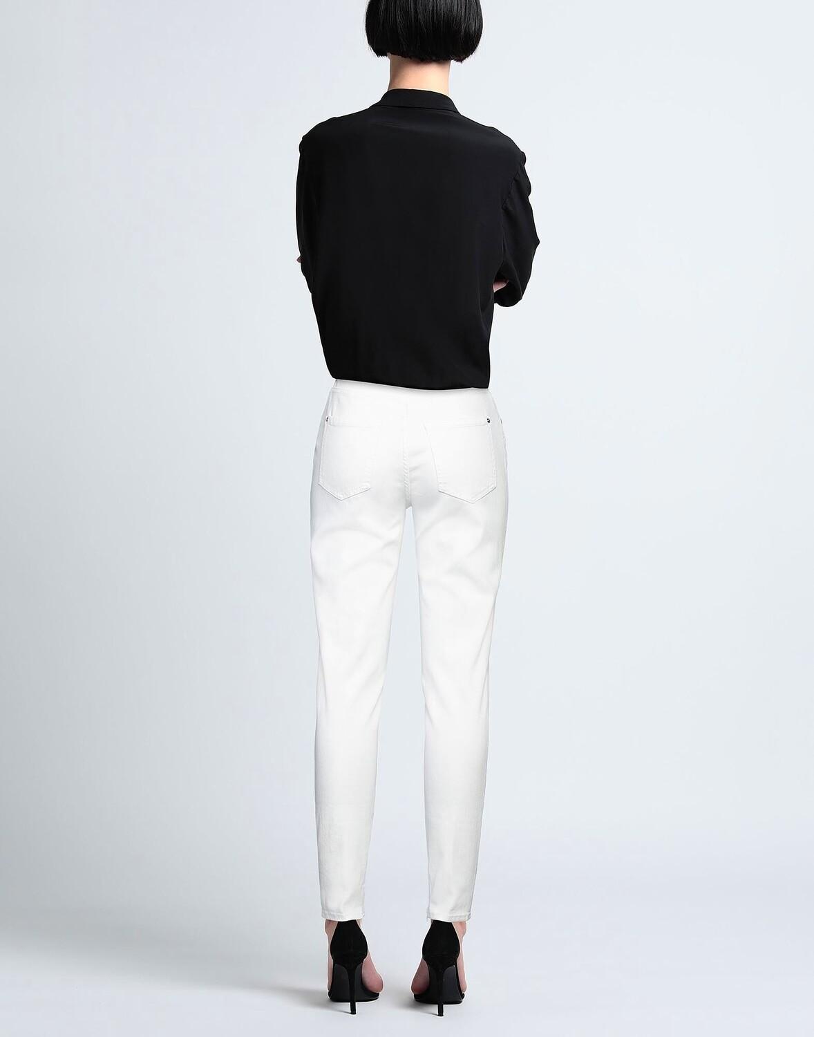 Джинсовая ткань, логотип бренда, одноцветное изделие, цветная стирка, завышенная талия, шлевки для ремня, зауженные брючины, узкие брюки, застежка на пуговицы, молнии по низу, эластичный, машинная стирка, нельзя сушить в стиральной машине, не отбеливать, содержит нетекстильные материалы части животного происхождения, худая модель