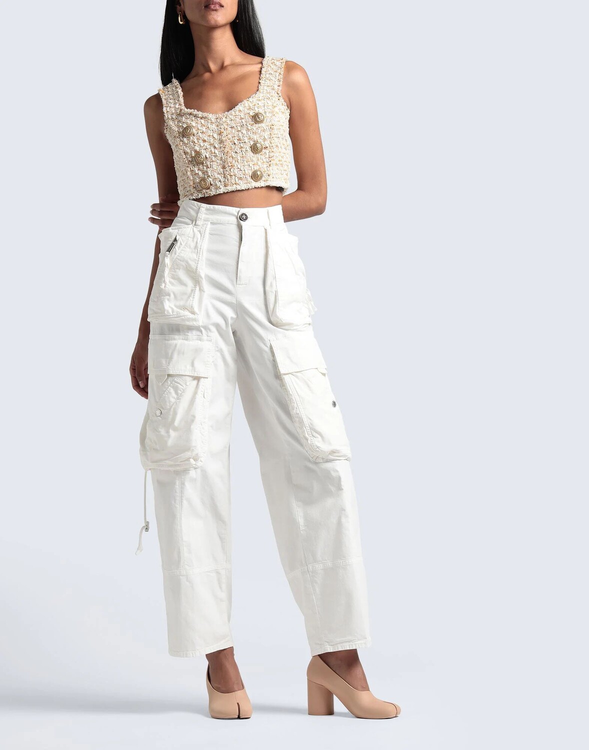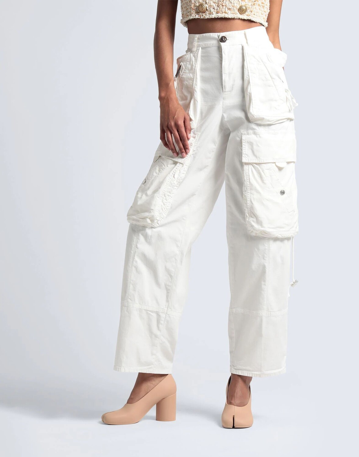 Парусина, логотип бренда, одноцветное изделие, завышенная талия, зауженные брючины, стандартная посадка, застежка-молния, пуговицы, множество карманов, эластичный, карго