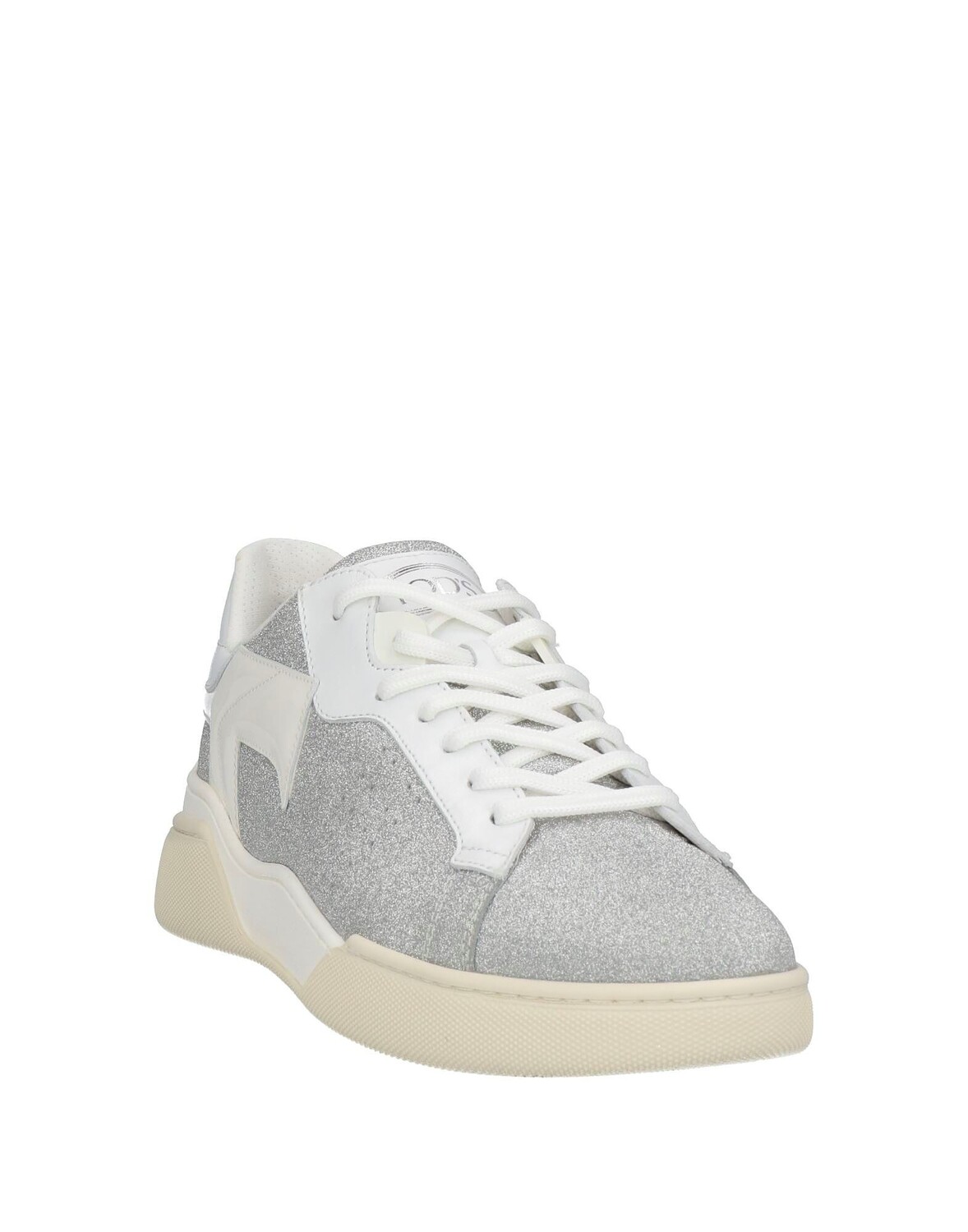 Кожа, эффект лака, блестки, логотип бренда, двухцветное изображение, кожаная подкладка, шнуровка, скругленный носок, плоская поверхность, резиновая подошва с тиснением, содержит нетекстильные части животного происхождения, низкие кеды и кроссовки