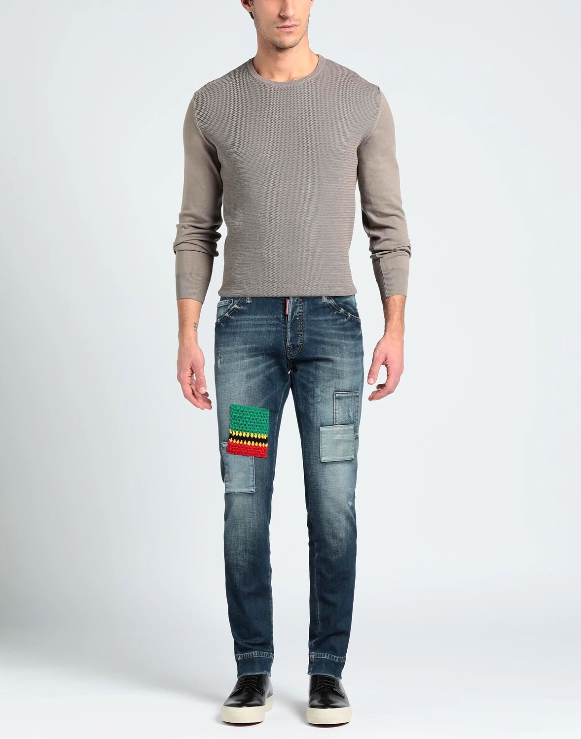 Деним, выцветший, потертый, украшение, логотип бренда, одноцветное изделие с аппликациями, средняя степень стирки, завышенная талия, застежка на пуговицы, пять карманов, зауженная модель