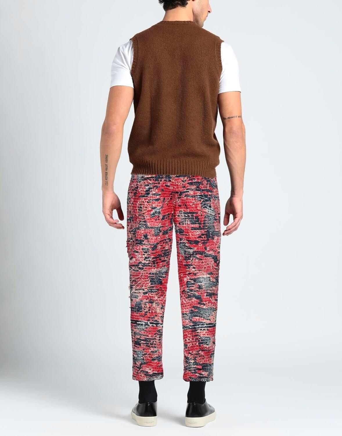 Деним, полотняное переплетение, потертости, контрастные аппликации, логотип бренда, многоцветный рисунок, средняя степень стирки, завышенная талия, зауженные брючины, брюки узкого кроя, пуговицы, множество карманов, содержит нетекстильные части животного происхождения, модель прямого кроя