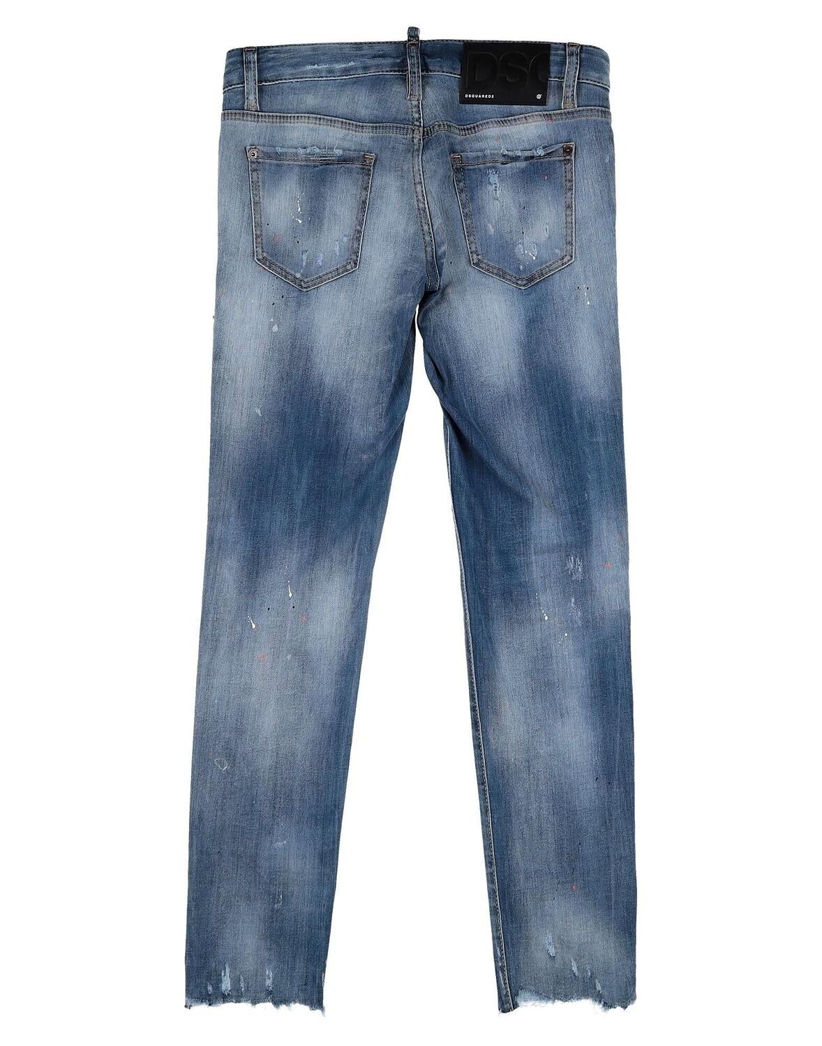 Деним, логотип, кожаные аппликации, одноцветное изделие, средняя степень стирки, заниженная талия, застежка спереди, пуговицы, множество карманов, стрейч, эффект пятен, выцветший, содержит нетекстильные части животного происхождения