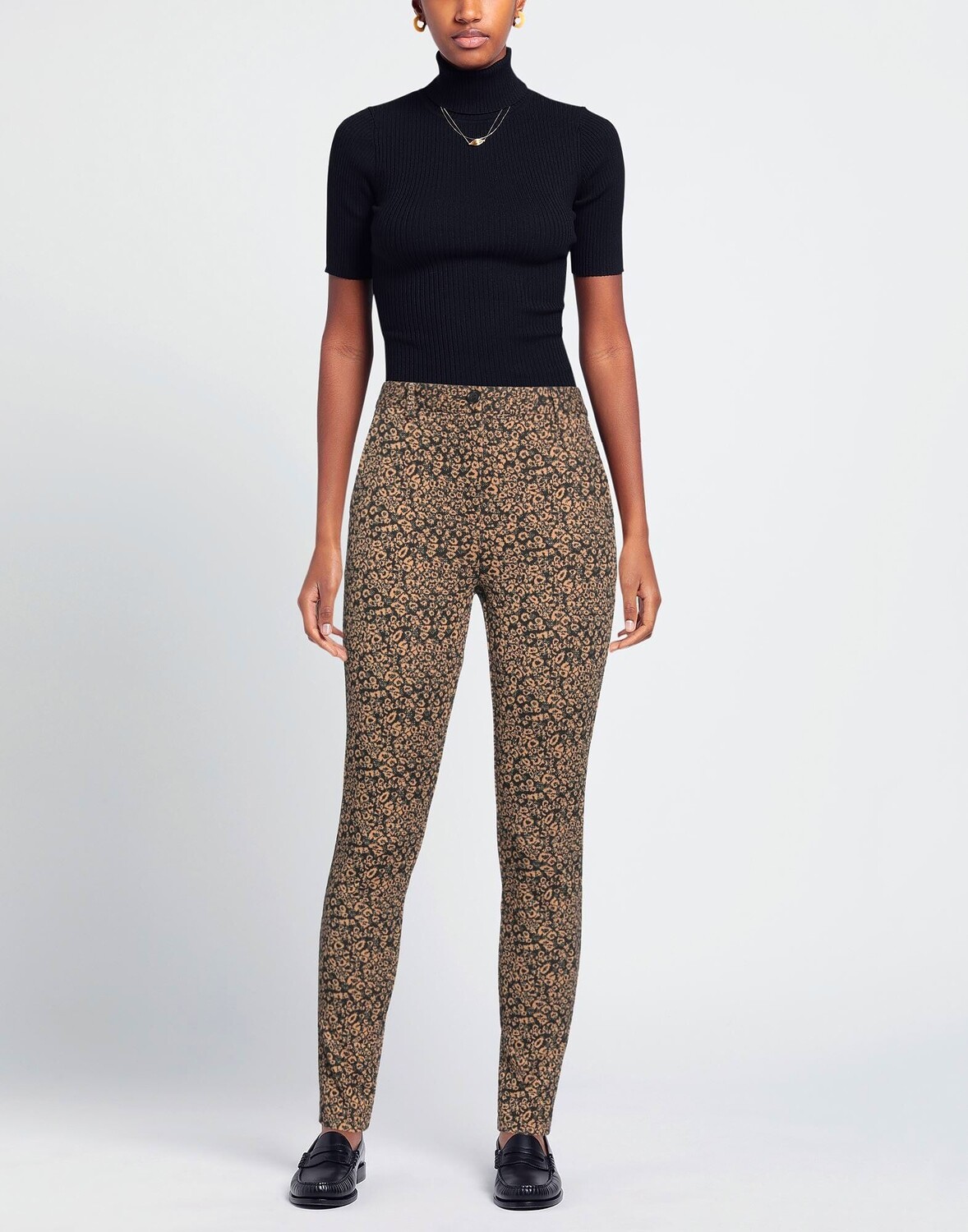 Узкие брюки, трикотажные, металлик, легкий трикотаж, логотип бренда, двухцветный, завышенная талия, шлевки для ремня, стандартный крой, застежка-молния, застежка на пуговицы, множество карманов, эластичный, ручная стирка или химчистка, нельзя отбеливать, нельзя сушить в стиральной машине