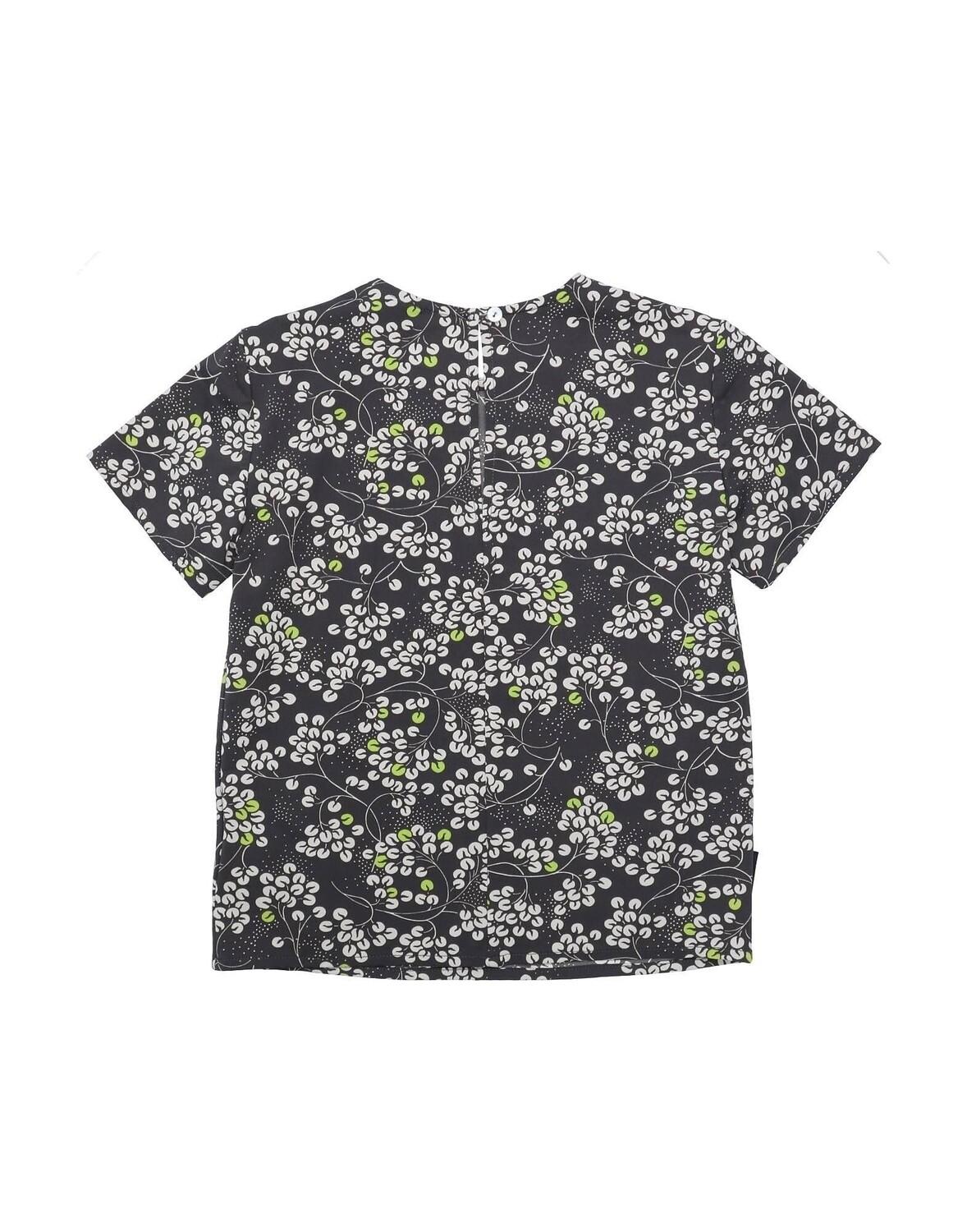 Джерси, без аппликаций, цветочный дизайн, круглый воротник, короткие рукава, стирка при 40°С, химическая чистка, гладить при температуре не выше 110°С, не отбеливать, нельзя сушить в стиральной машине, стрейч