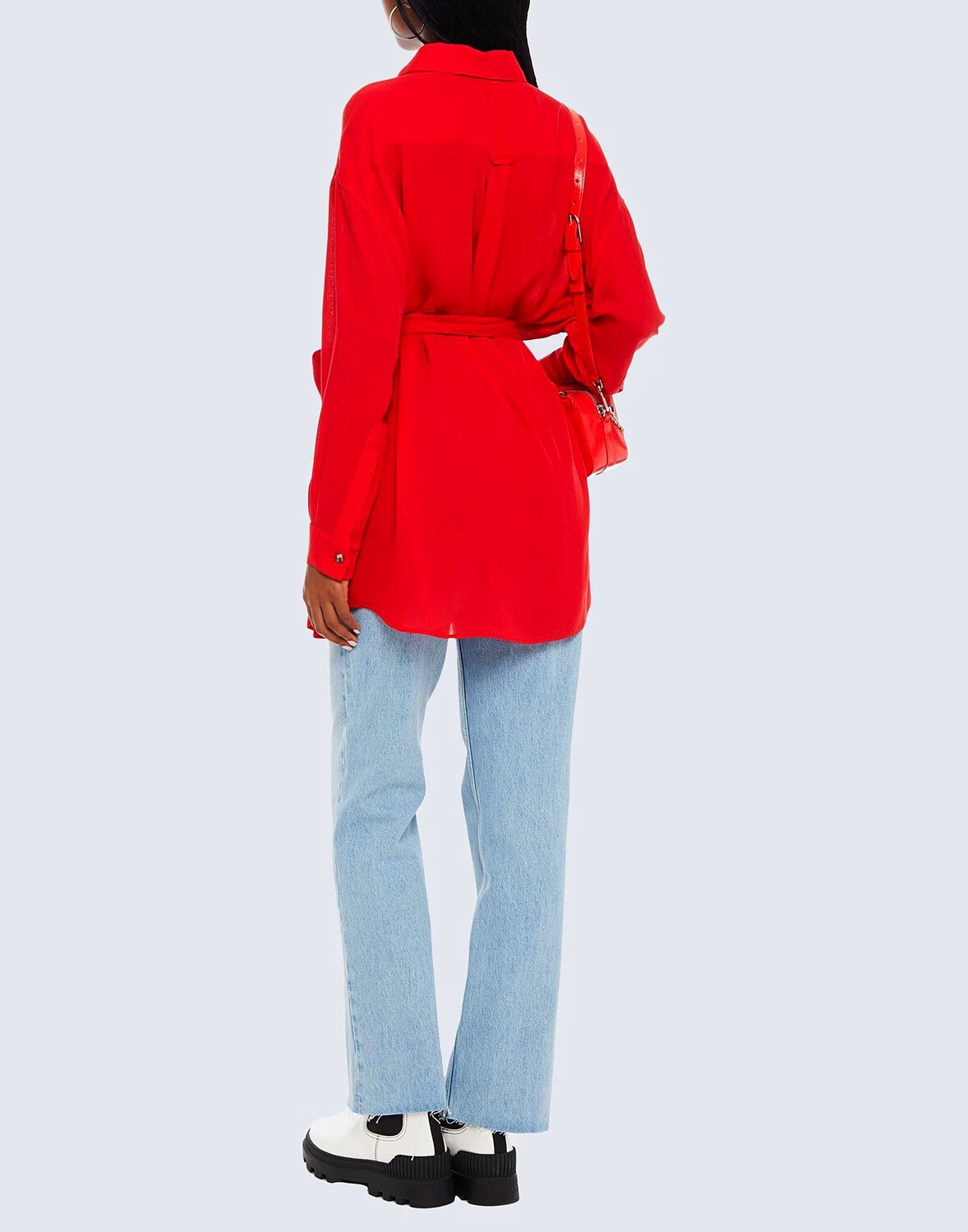 Креп, ремень, одноцветное изделие, классический вырез горловины, длинные рукава, манжеты на пуговицах, застежка на пуговицы