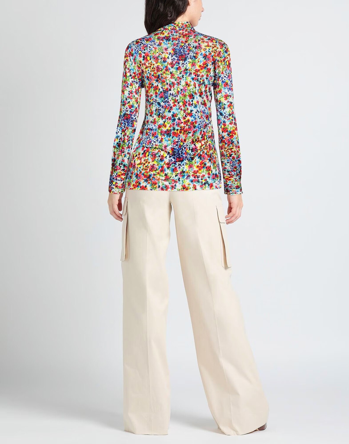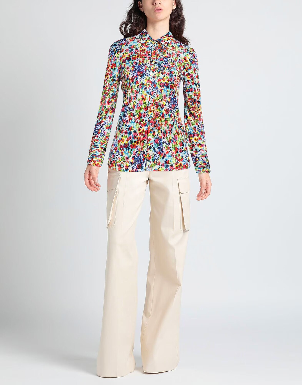 Трикотаж, логотип бренда, цветочный принт, классический воротник, длинные рукава, манжеты на пуговицах, застежка на пуговицы, без карманов, содержит нетекстильные части животного происхождения, рубашка
