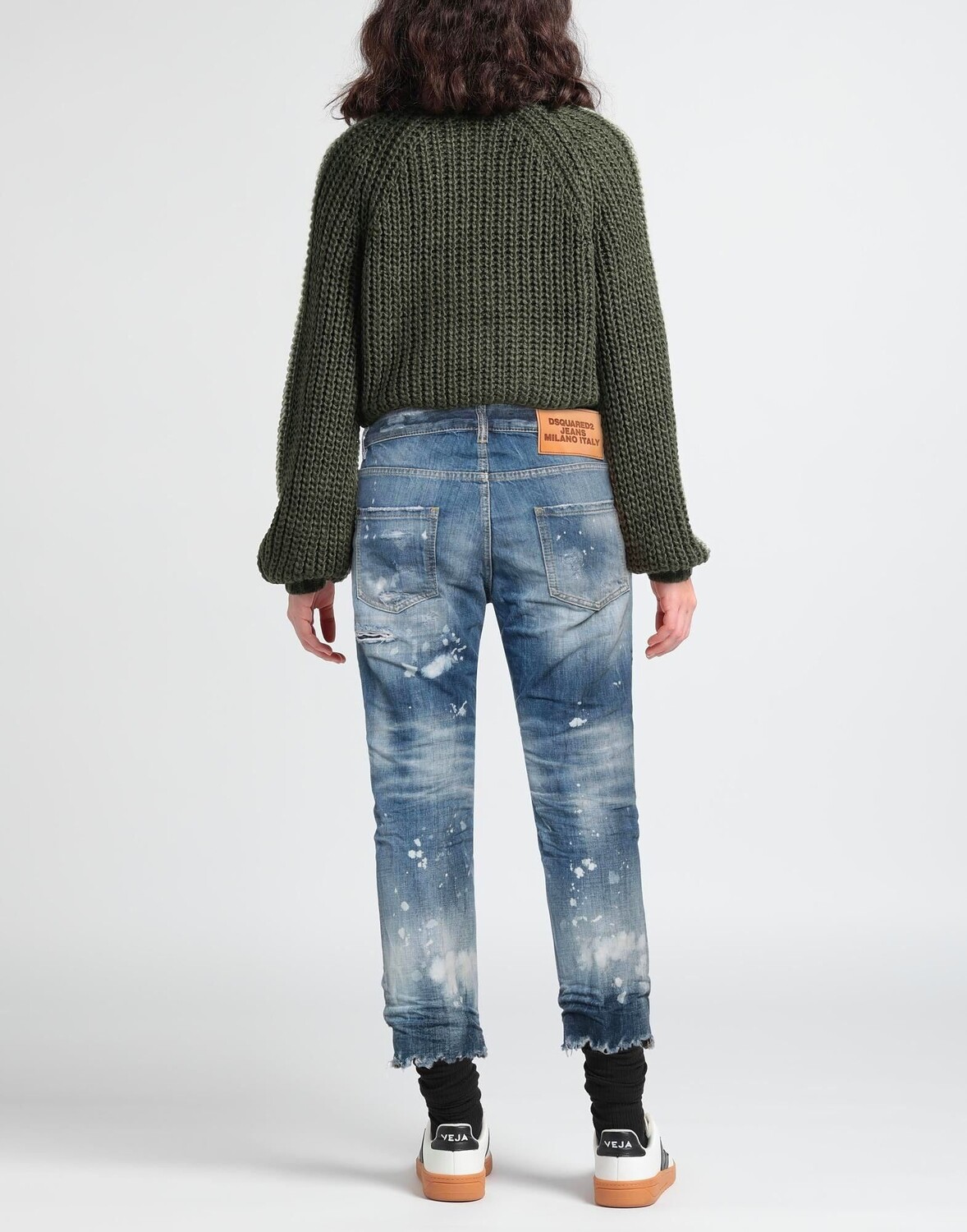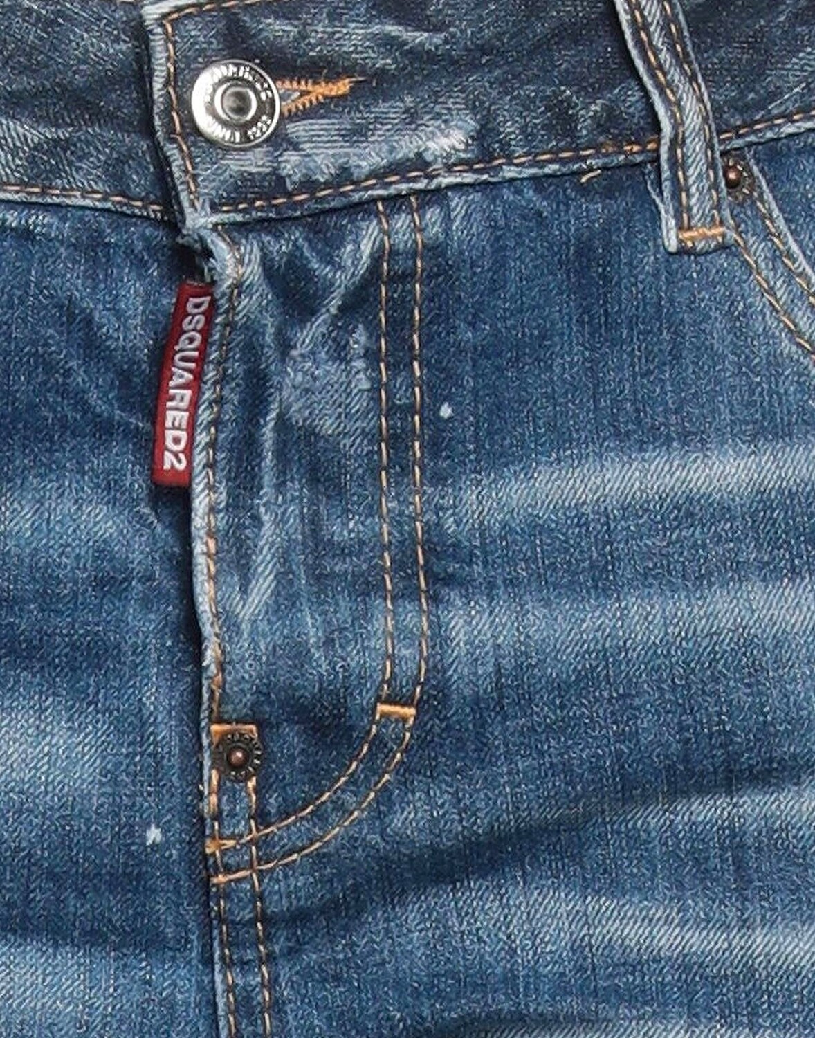 Деним, выцветший, эффект потертости, логотип бренда, одноцветное изделие, средняя степень стирки, завышенная талия, зауженные брючины, стандартный крой, пуговицы, необработанный подол, множество карманов, содержит нетекстильные части животного происхождения, модель бойфренд