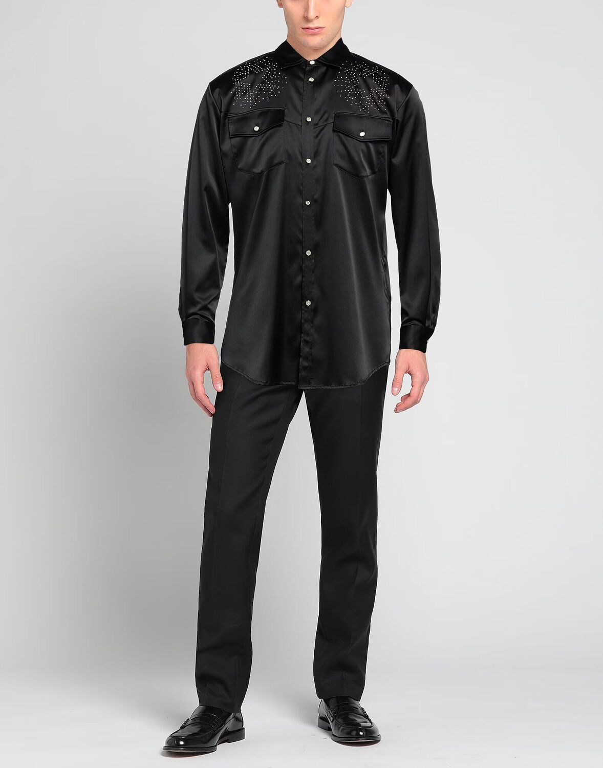 Атлас, заклепки, однотонное изделие с аппликациями, окрашенное в технике тай-дай, классический воротник, длинные рукава, застежка на пуговицы, два нагрудных кармана, стрейч, ручная стирка, нельзя отбеливать, нельзя сушить в стиральной машине, рубашка обычного кроя