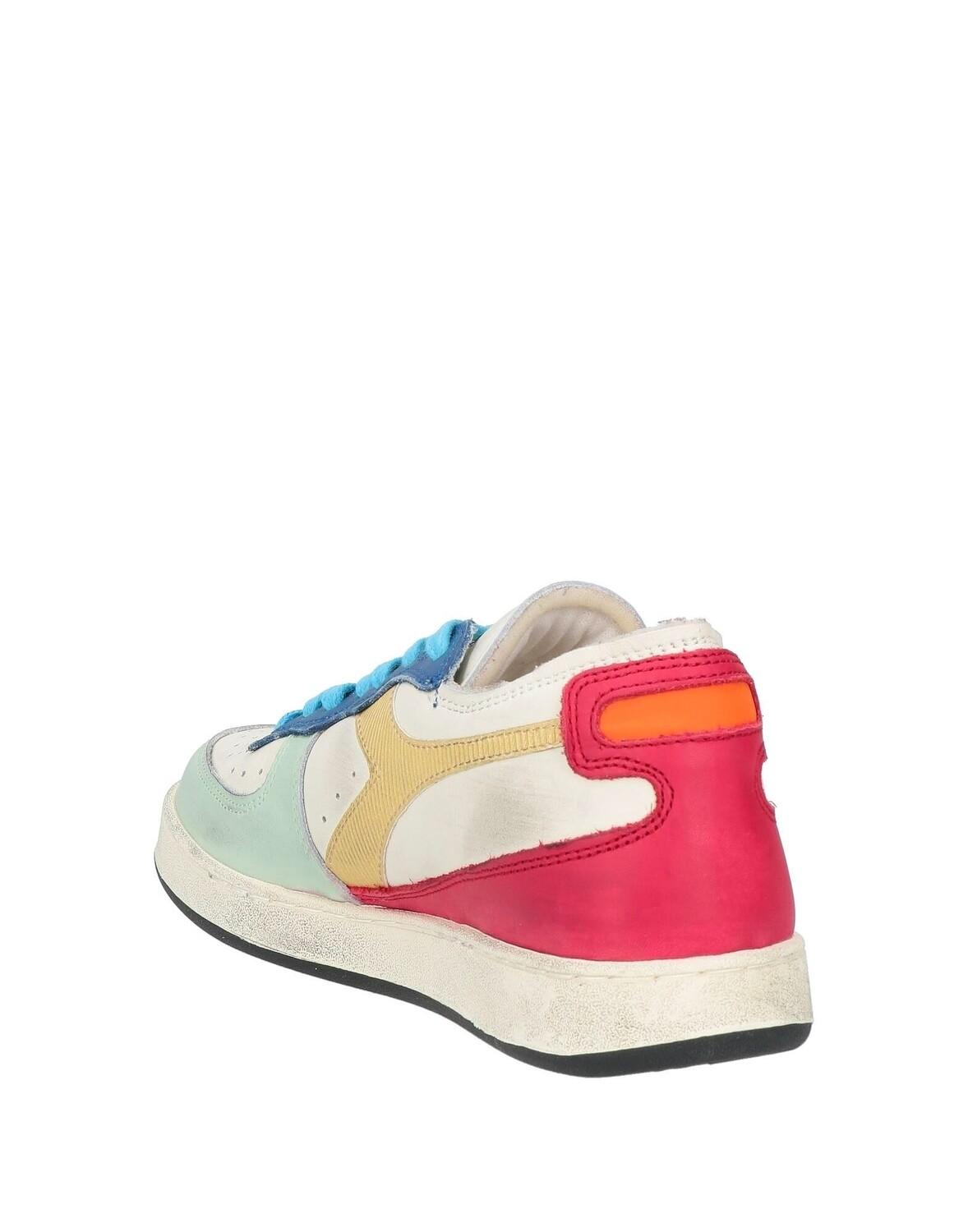 Кожа, эффект потертости, логотип бренда, разноцветный рисунок, кожаная подкладка, шнуровка, скругленный носок, плоская поверхность, резиновая подошва с тиснением, содержит нетекстильные части животного происхождения, низкие кеды и кроссовки