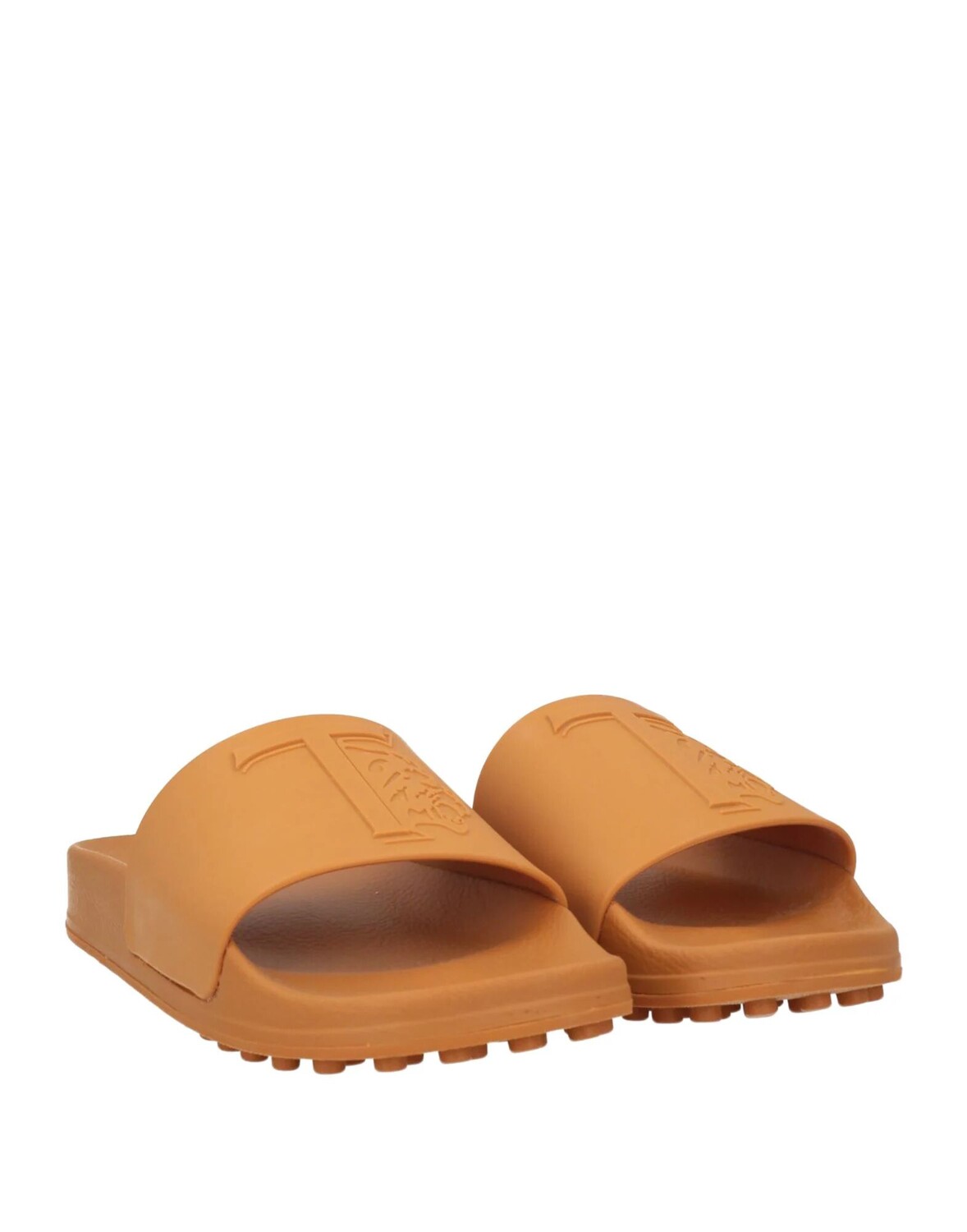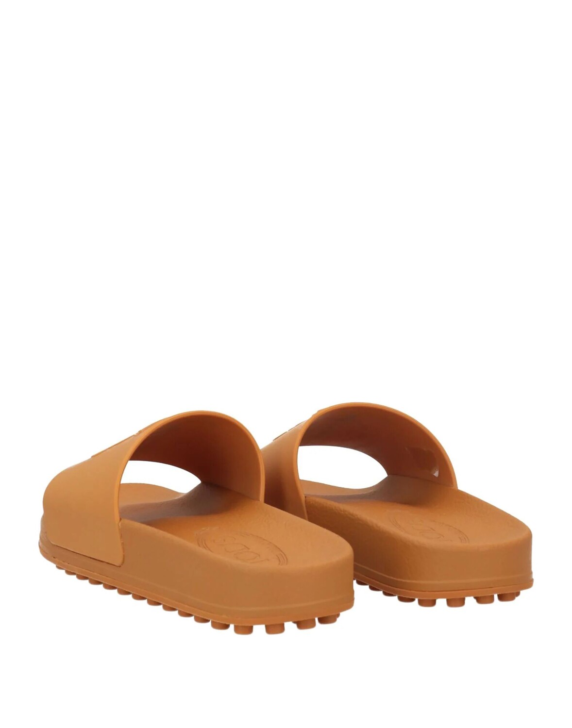 Логотип бренда, одноцветное изделие, резиновая подкладка, скругленный носок, плоская подошва, галька, шлепанцы для бассейна