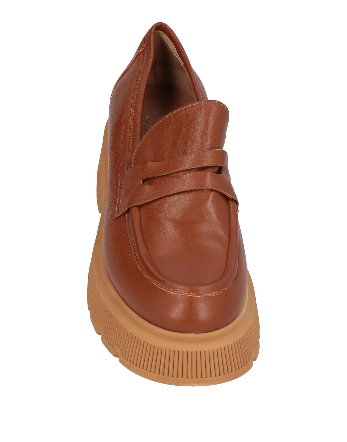 Кожа, без аппликаций, одноцветное изделие, подкладка из кожи, скругленный носок, без каблука, резиновая подошва с тиснением, содержит нетекстильные части животного происхождения, массивные лоферы