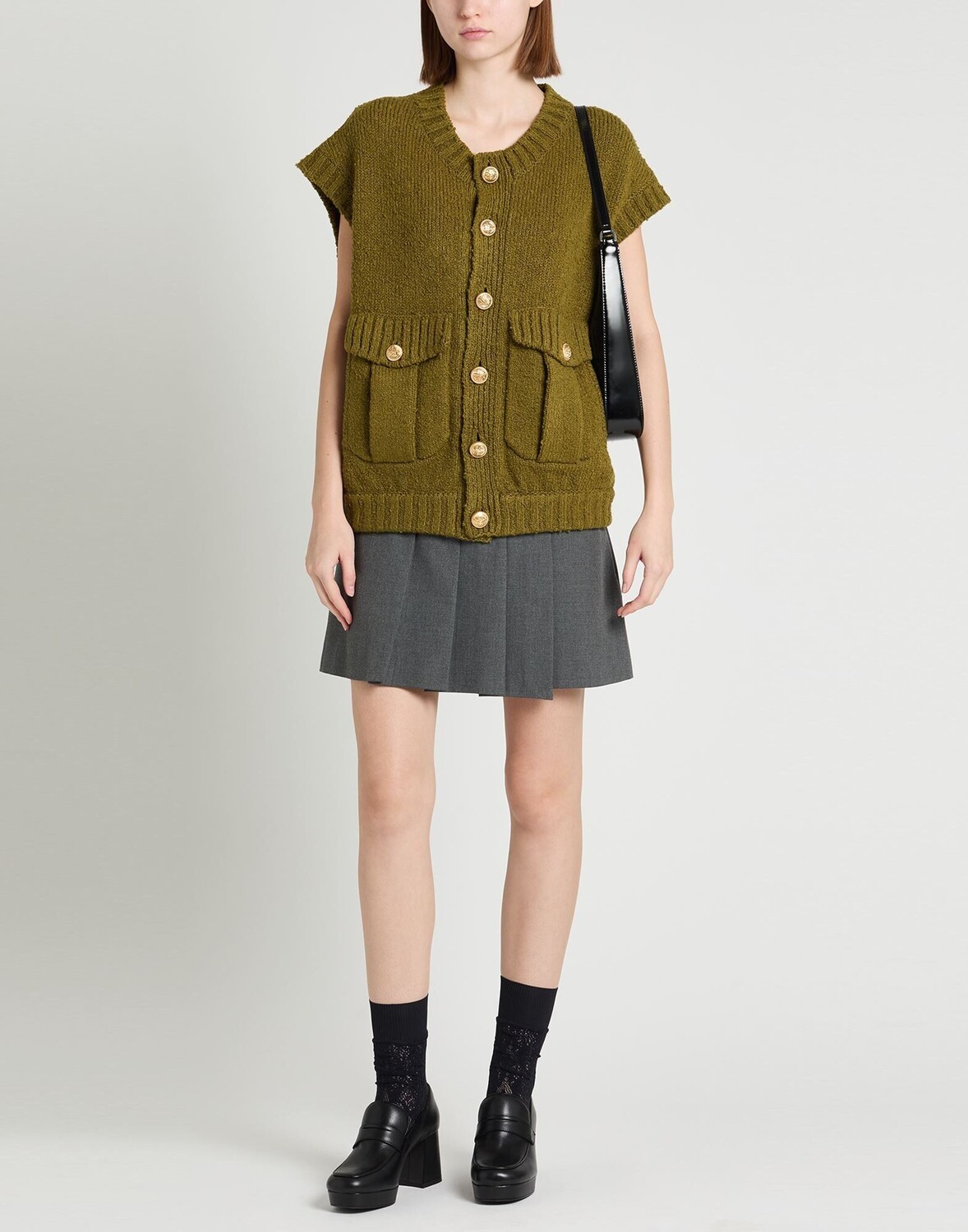 Букле, трикотаж средней плотности, логотип бренда, одноцветное изделие, короткие рукава, застежка на пуговицы, множество карманов, химчистка, нельзя отбеливать, нельзя сушить в стиральной машине