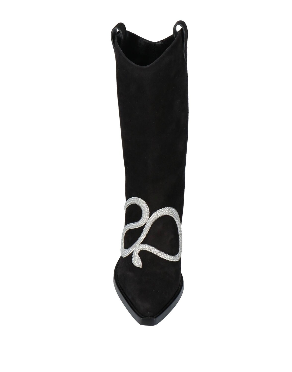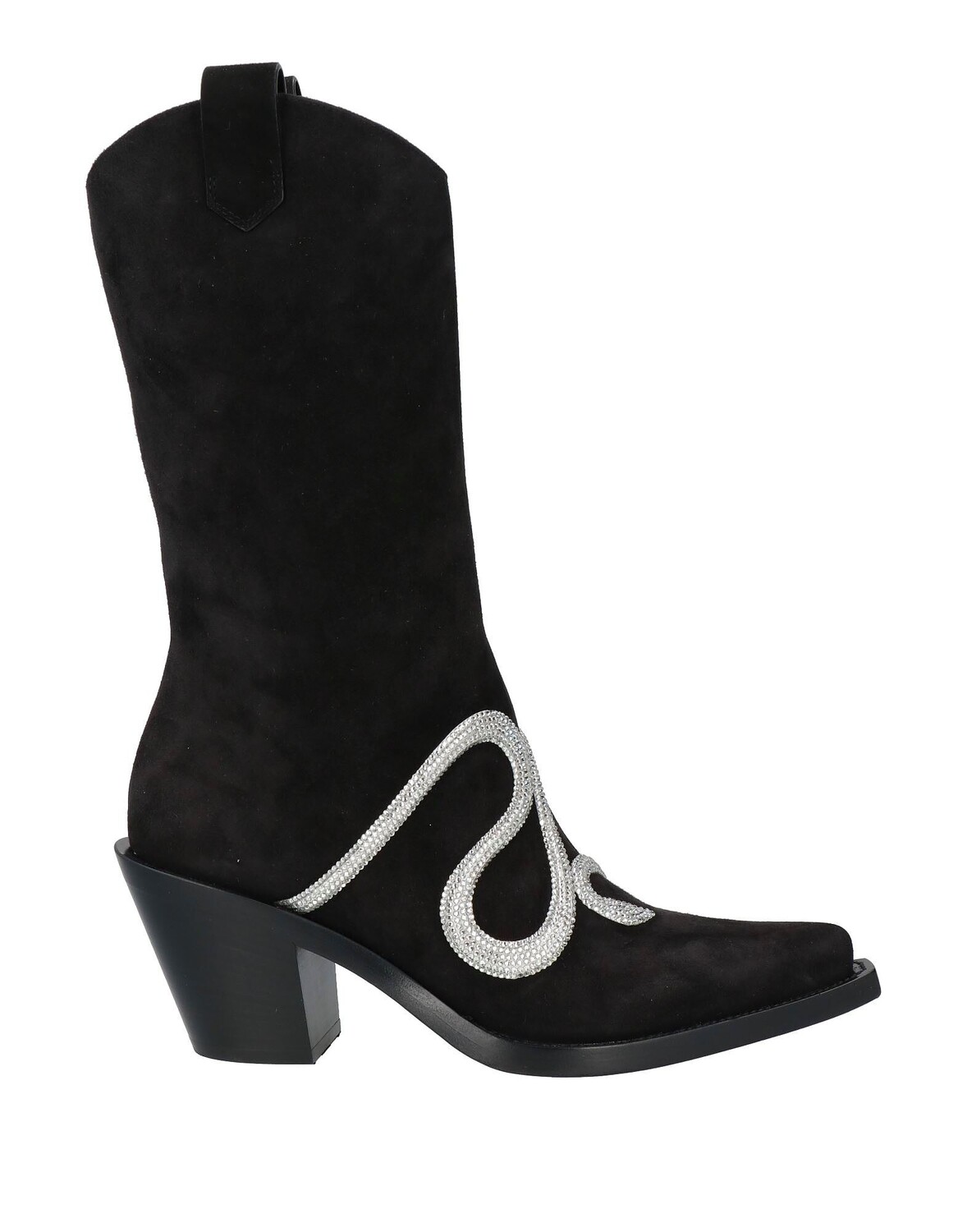 Ковбойские ботильоны, замша, одноцветное изделие с аппликациями, кристаллы, кожаная подкладка, острый носок, кубинский каблук, кожаная подошва, содержит нетекстильные части животного происхождения