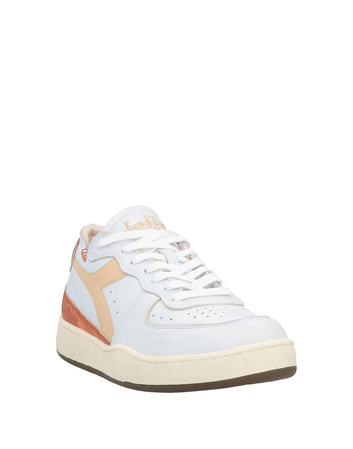 Кожа, логотип бренда, разноцветный узор, кожаная подкладка, шнуровка, скругленный носок, без каблука, резиновая подошва с тиснением, содержит нетекстильные части животного происхождения, низкие кеды и кроссовки, маленький размер