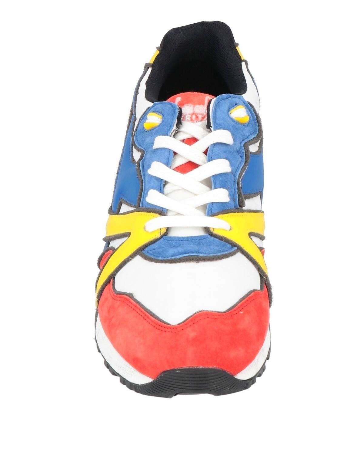 Кожа, техническая ткань, эффект замши, логотип бренда, разноцветный рисунок, внутри на подкладке, шнуровка, скругленный носок, без каблука, резиновая подошва, содержит нетекстильные части животного происхождения, низкие кеды и кроссовки, маленький размер
