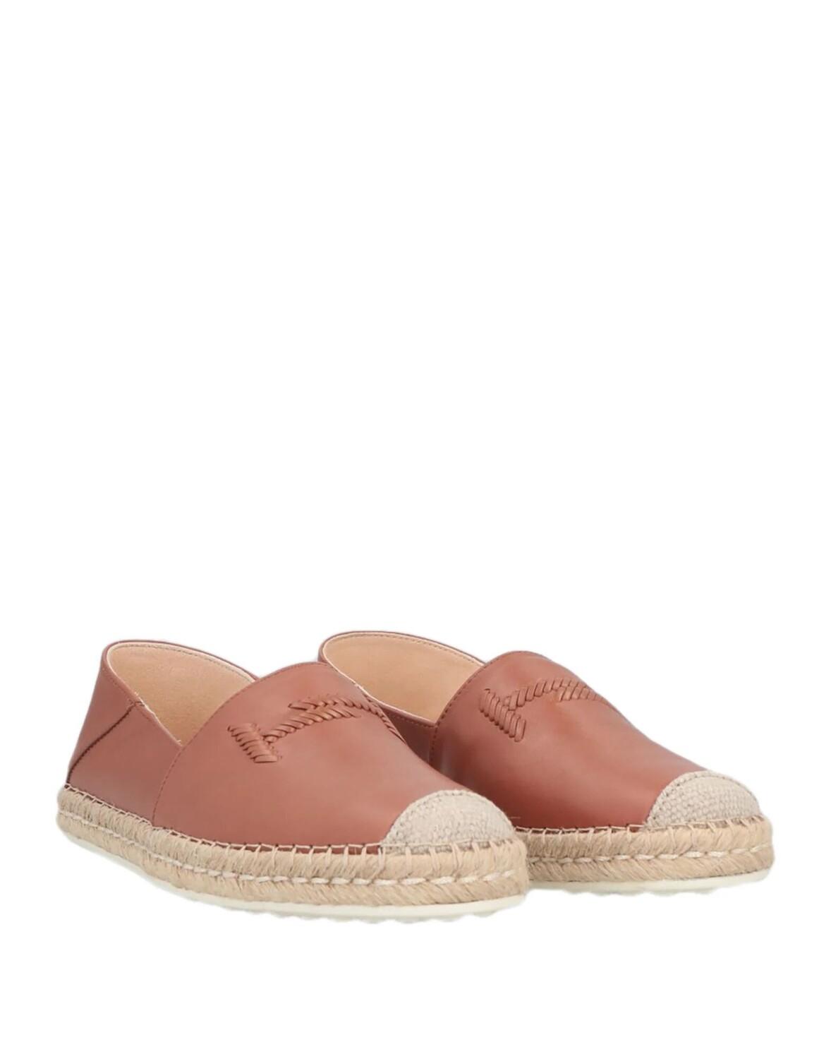 Кожа, логотип бренда, одноцветное изделие, кожаная подкладка, скругленный носок, без каблука, резиновая подошва с тиснением, содержит нетекстильные части животного происхождения, закрытые эспадрильи