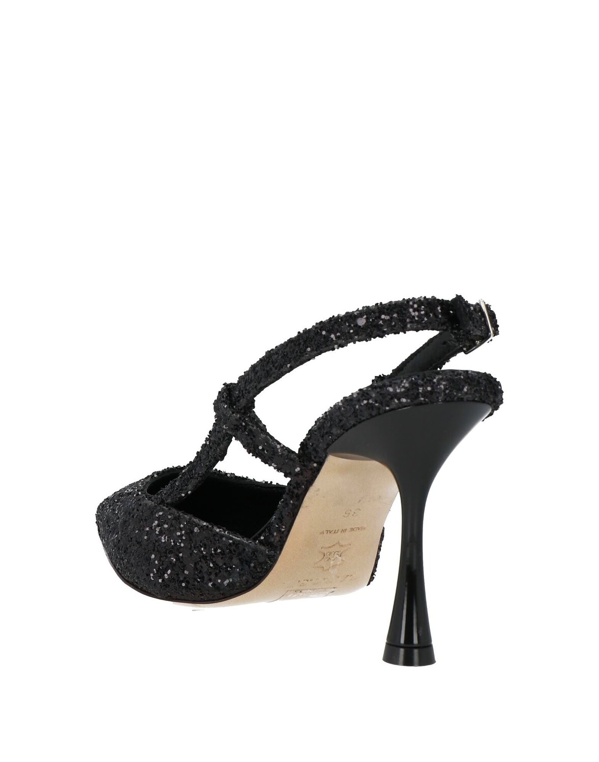 Ткань, блестки, без аппликаций, одноцветное изделие, подкладка из кожи, застежка на пряжке, острый носок, каблук-катушка, кожаная подошва, содержит нетекстильные части животного происхождения, туфли-лодочки с пяткой на пятке