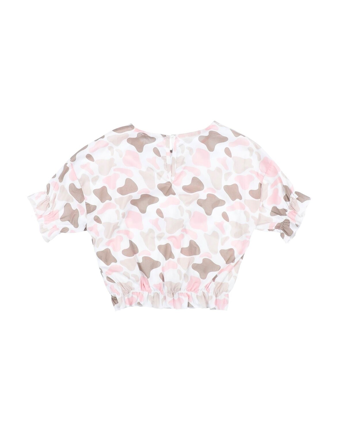 Полотняное переплетение, без аппликаций, животный принт, круглый вырез, короткие рукава, стирка при 30°C, химическая чистка, нельзя отбеливать, сушить в стиральной машине, гладить при температуре не выше 110°C