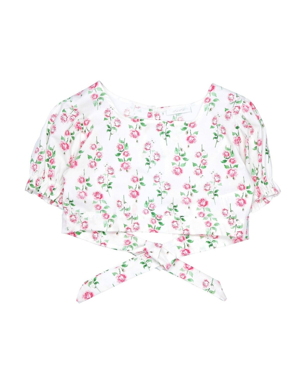 Полотняное переплетение, воланы, разноцветный, цветочный принт, квадратный вырез, короткие рукава, завязка, 1 пуговица, без карманов, эластичный, стирка при 30°C, химическая чистка, нельзя отбеливать, можно сушить в стиральной машине, гладить при 110° с макс