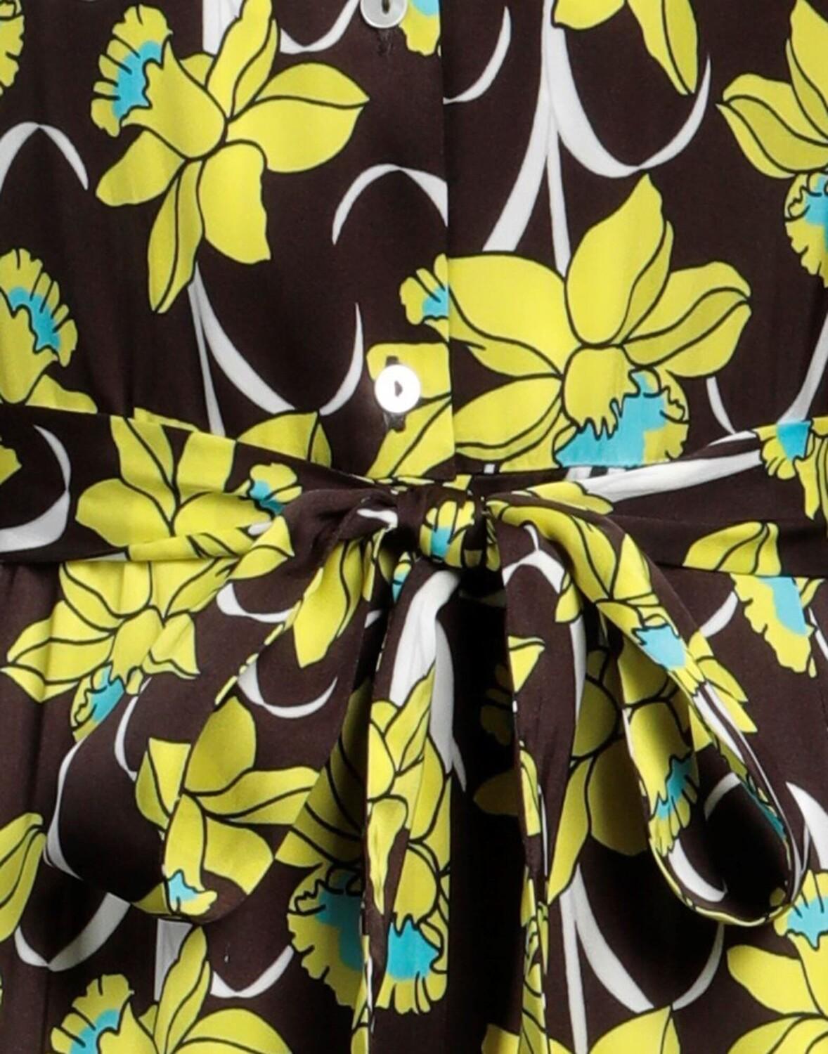 Атлас, пояс, цветочный дизайн, воротник с лацканами, короткие рукава, без подкладки, без карманов, пуговицы, платье-рубашка