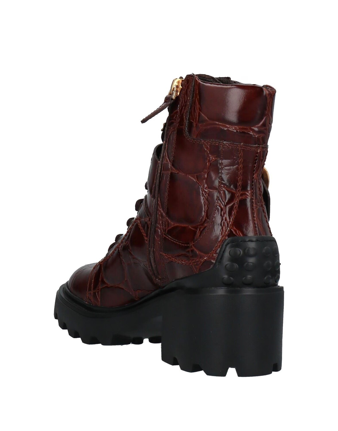 Ботильоны на шнуровке, кожа, крокодиловый принт, логотип бренда, пряжка, одноцветное изделие, подкладка из кожи, шнуровка, застежка-молния, круглый носок, квадратный каблук, подошва с выступами, содержит нетекстильные части животного происхождения