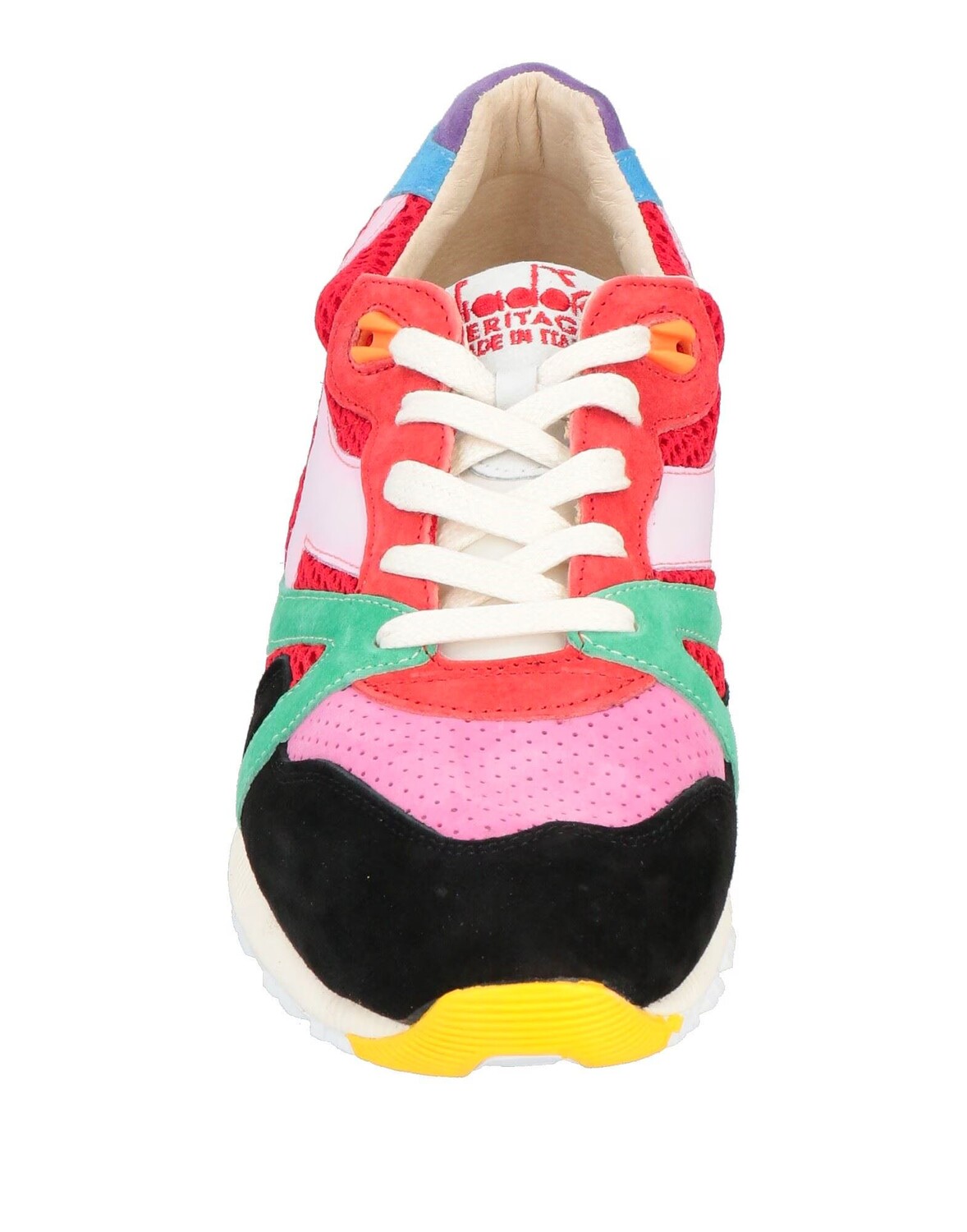 Кожа, сетчатая ткань, эффект замши, логотип бренда, разноцветный рисунок, кожаная подкладка, шнуровка, скругленный носок, без каблука, резиновая подошва с тиснением, содержит нетекстильные части животного происхождения, низкие кеды и кроссовки, маленький размер
