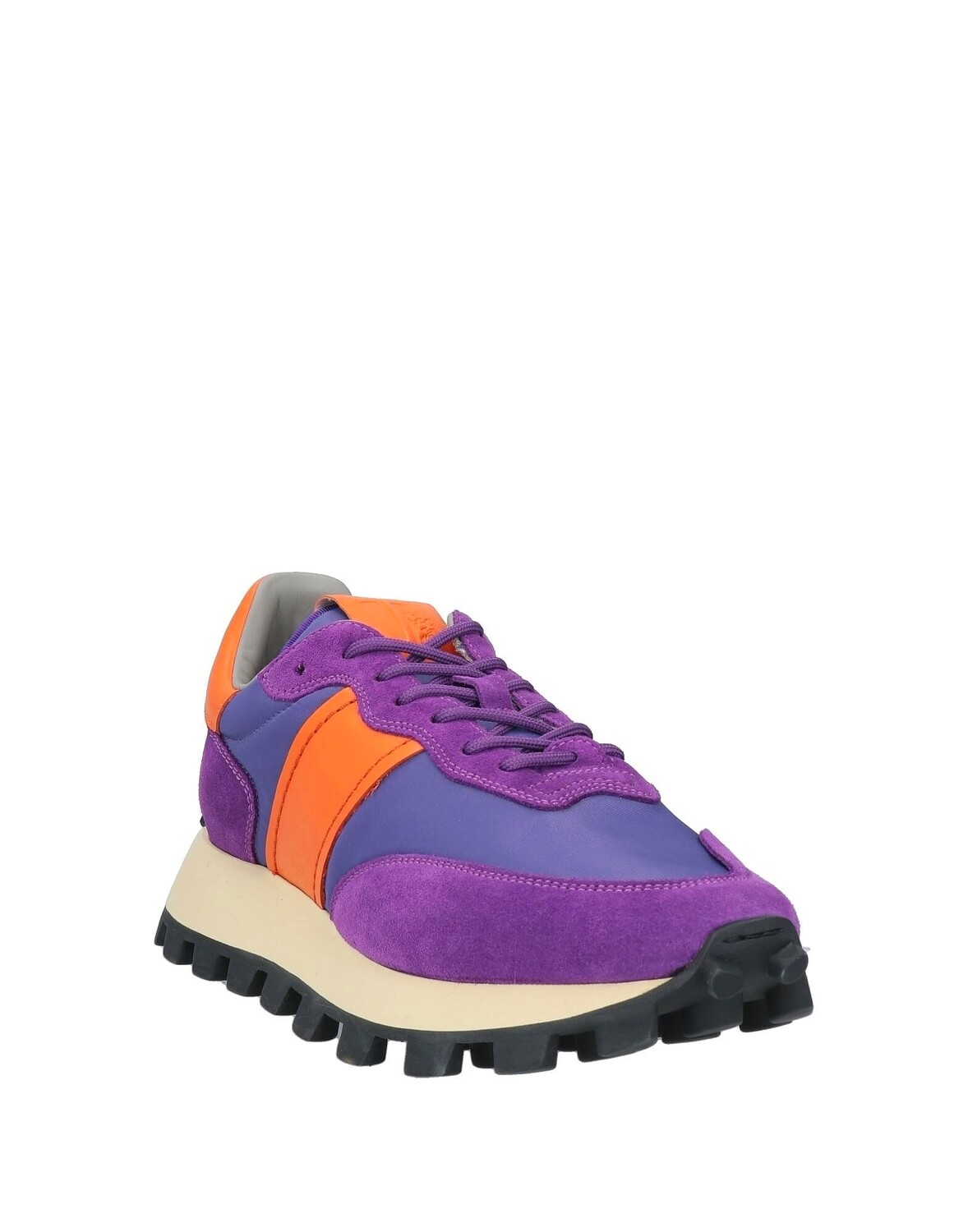Кожа, техническая ткань, эффект замши, логотип бренда, разноцветный рисунок, кожаная подкладка, шнуровка, скругленный носок, без каблука, резиновая подошва с тиснением, содержит нетекстильные части животного происхождения, низкие кеды и кроссовки