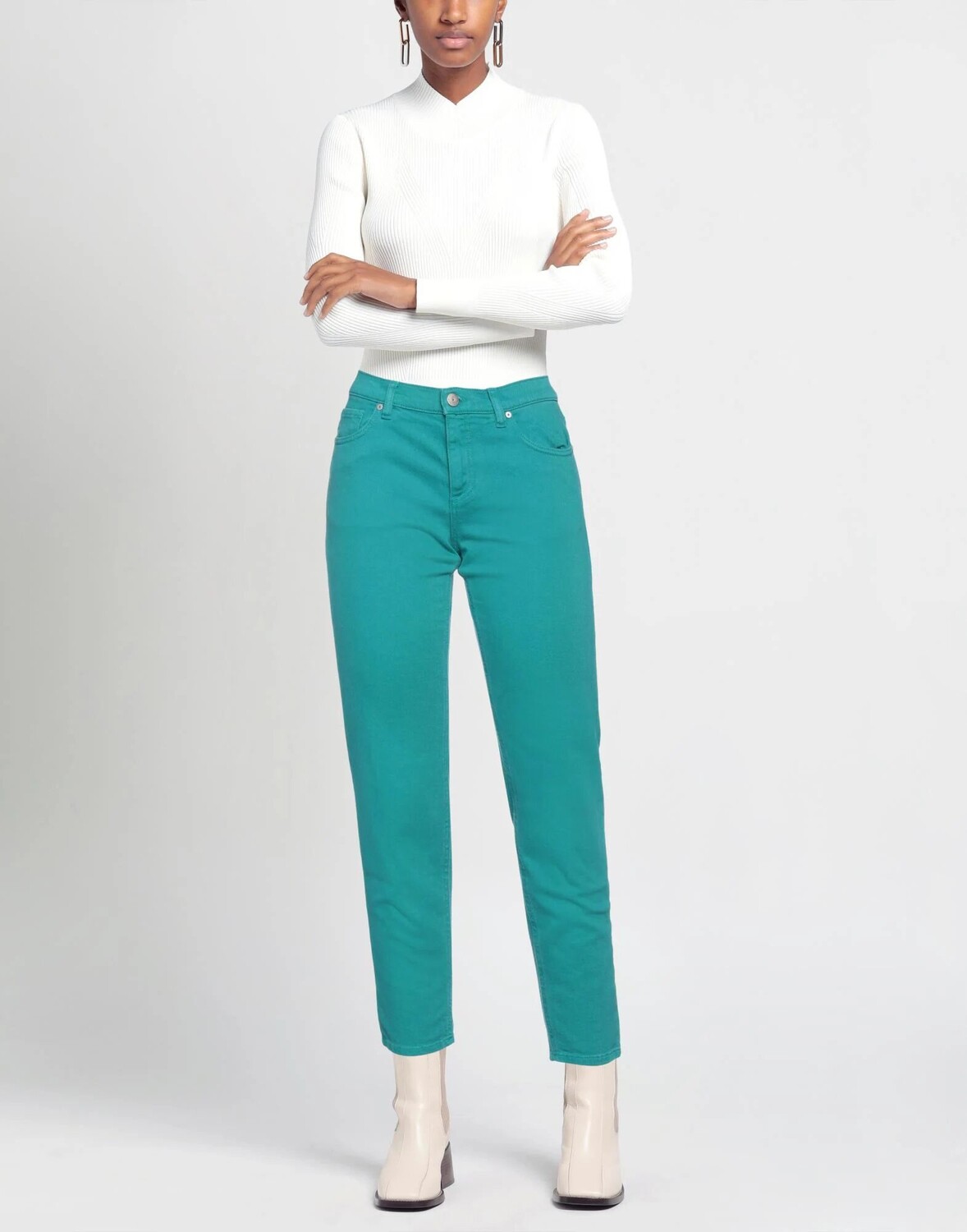 Деним, без аппликаций, однотонное изделие, цветная расцветка, средняя посадка, застежка спереди, пуговица, молния, множество карманов, стрейч