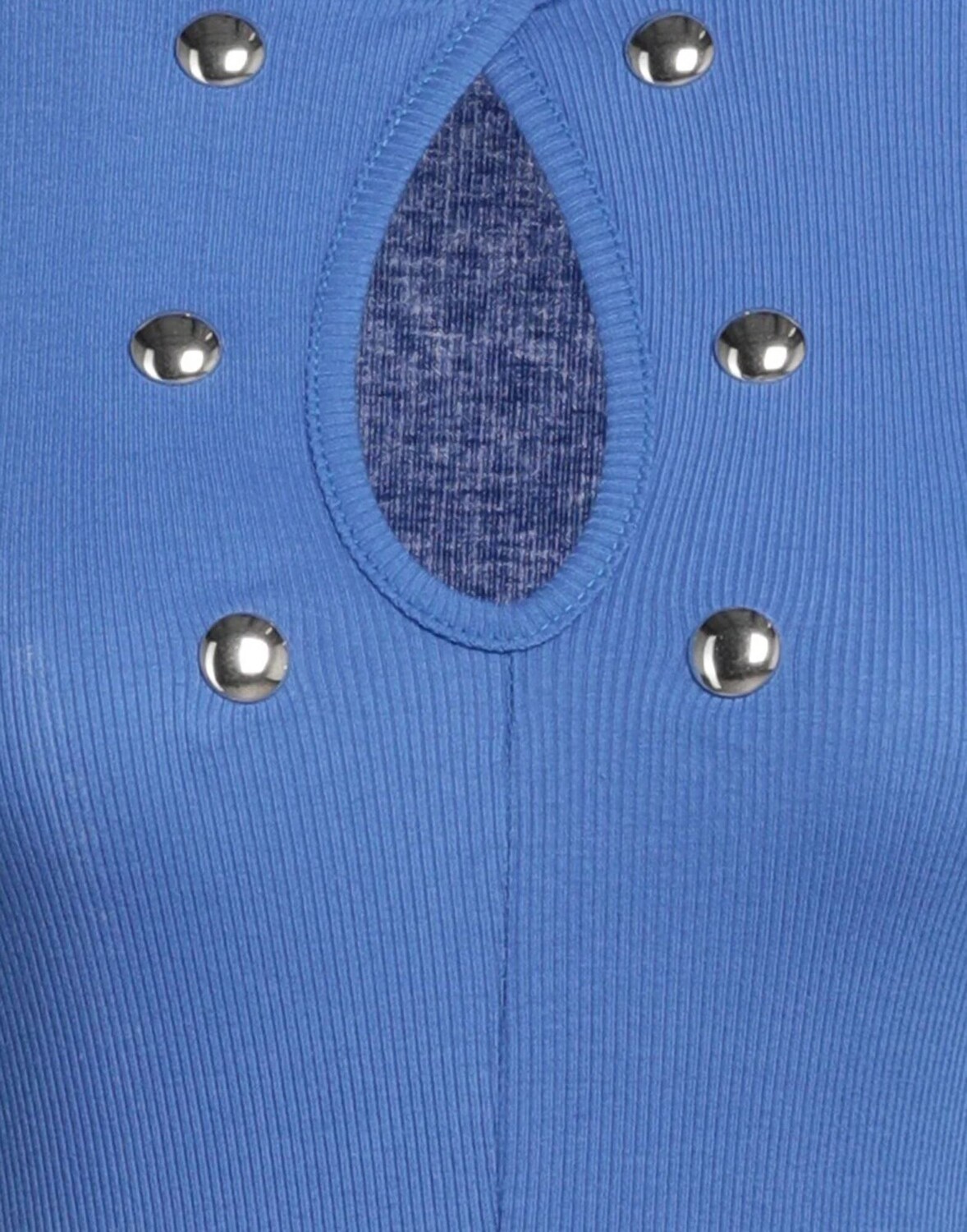 Джерси, заклепки, логотип бренда, одноцветное изделие с аппликациями, водолазка, без рукавов, без подкладки, без карманов, фасон трапеция