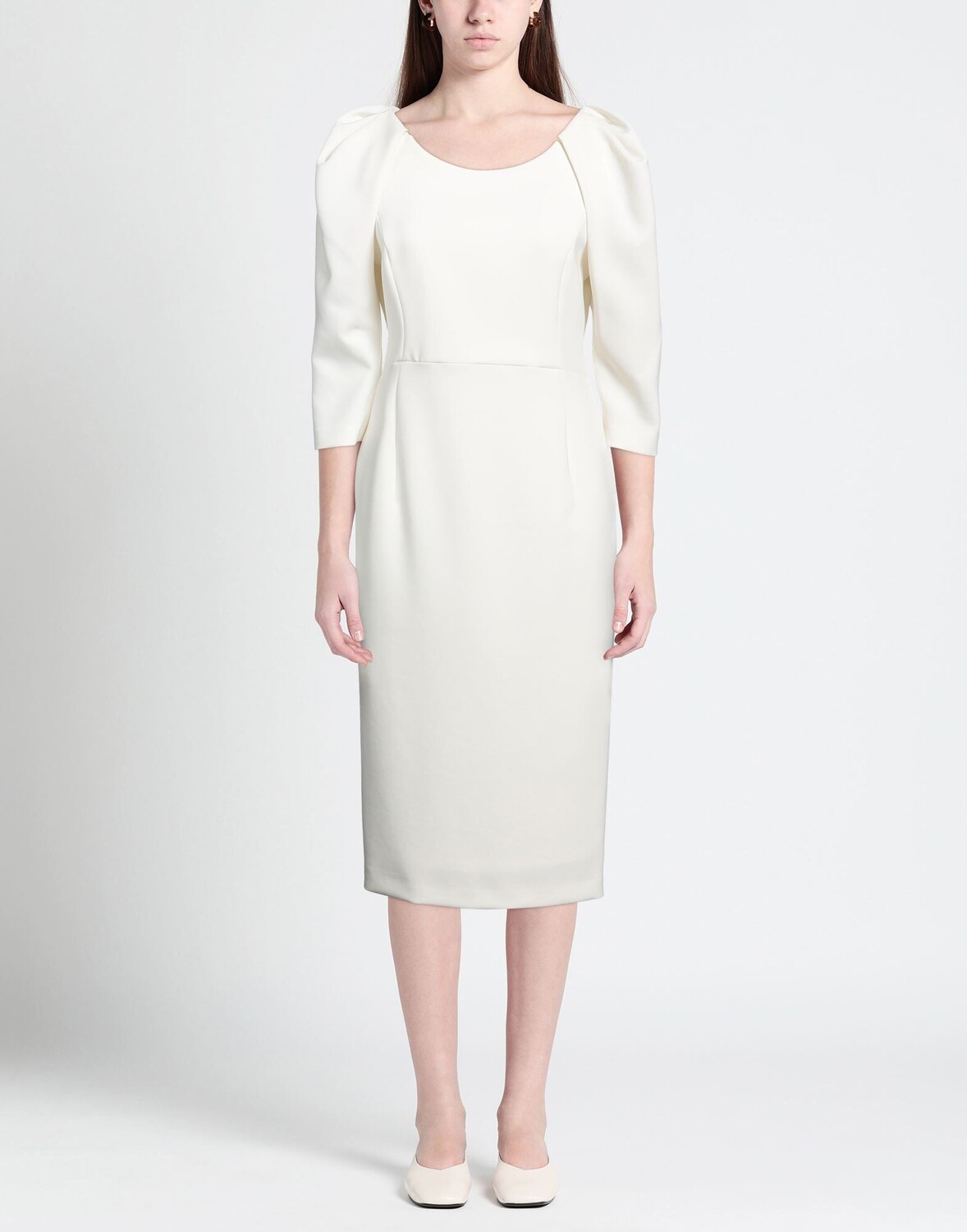 Креп, без аппликаций, одноцветное изделие, круглый вырез, рукава 3/4, на подкладке, застежка-молния, без карманов, облегающее платье