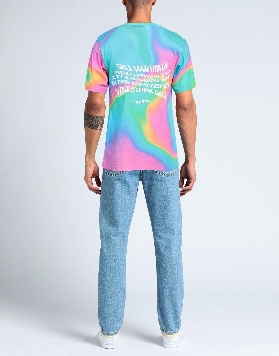 Трикотаж, логотип бренда, разноцветный рисунок, круглый вырез, короткие рукава, без карманов