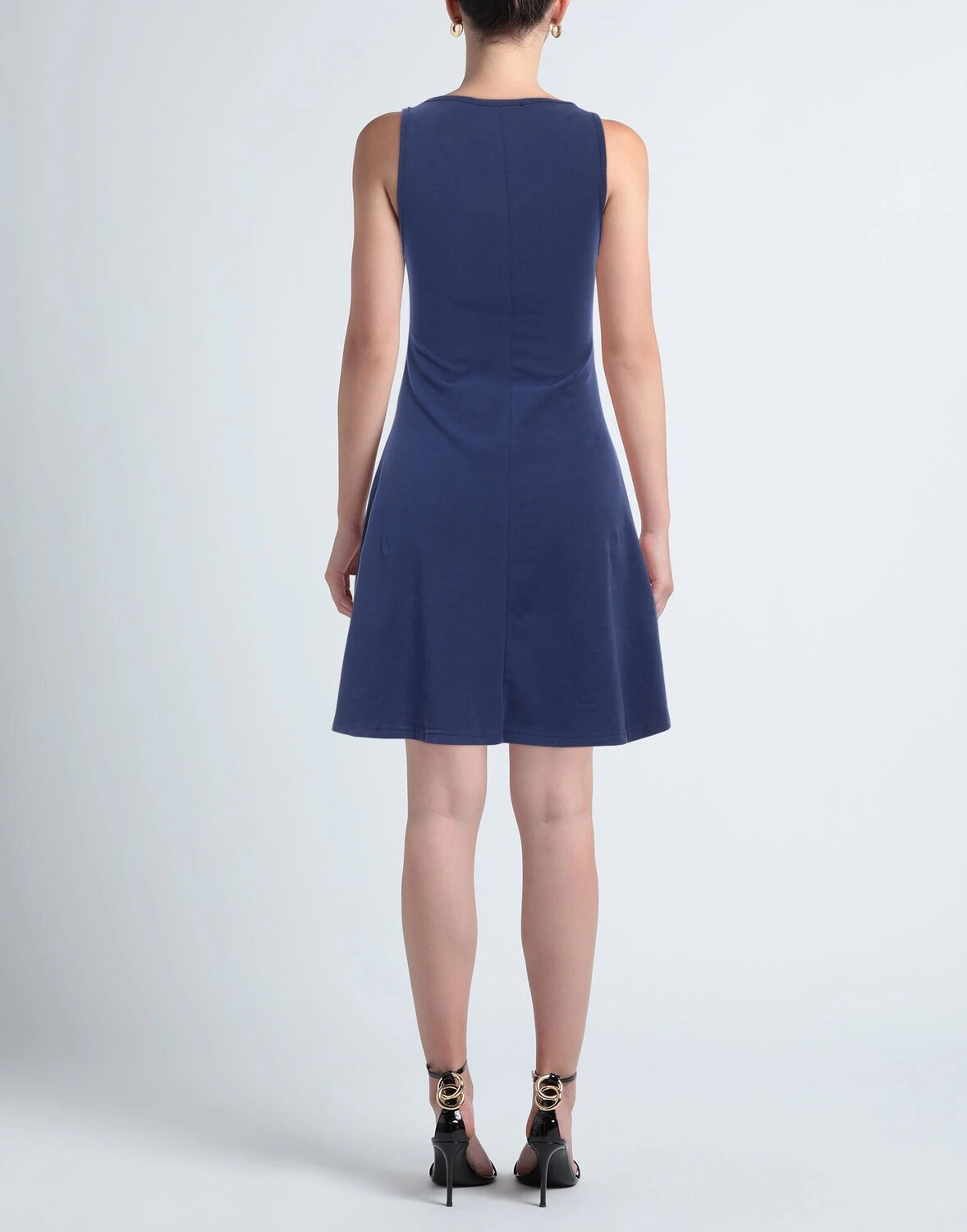 Джерси, логотип бренда, стразы, одноцветное изделие с аппликациями, круглый вырез, без рукавов, без подкладки, без карманов, расклешенный фасон