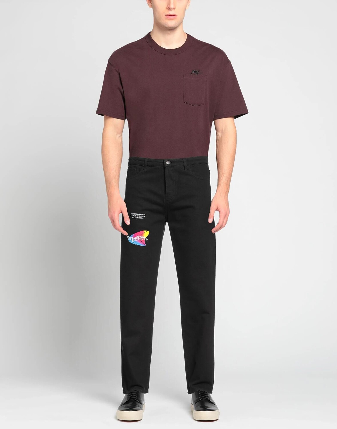 Джинсовая ткань, без аппликаций, одноцветное изделие с принтом, цветная расцветка, завышенная талия, прямые брючины, стандартный крой, застежка на пуговицы, множество карманов, модель прямого кроя
